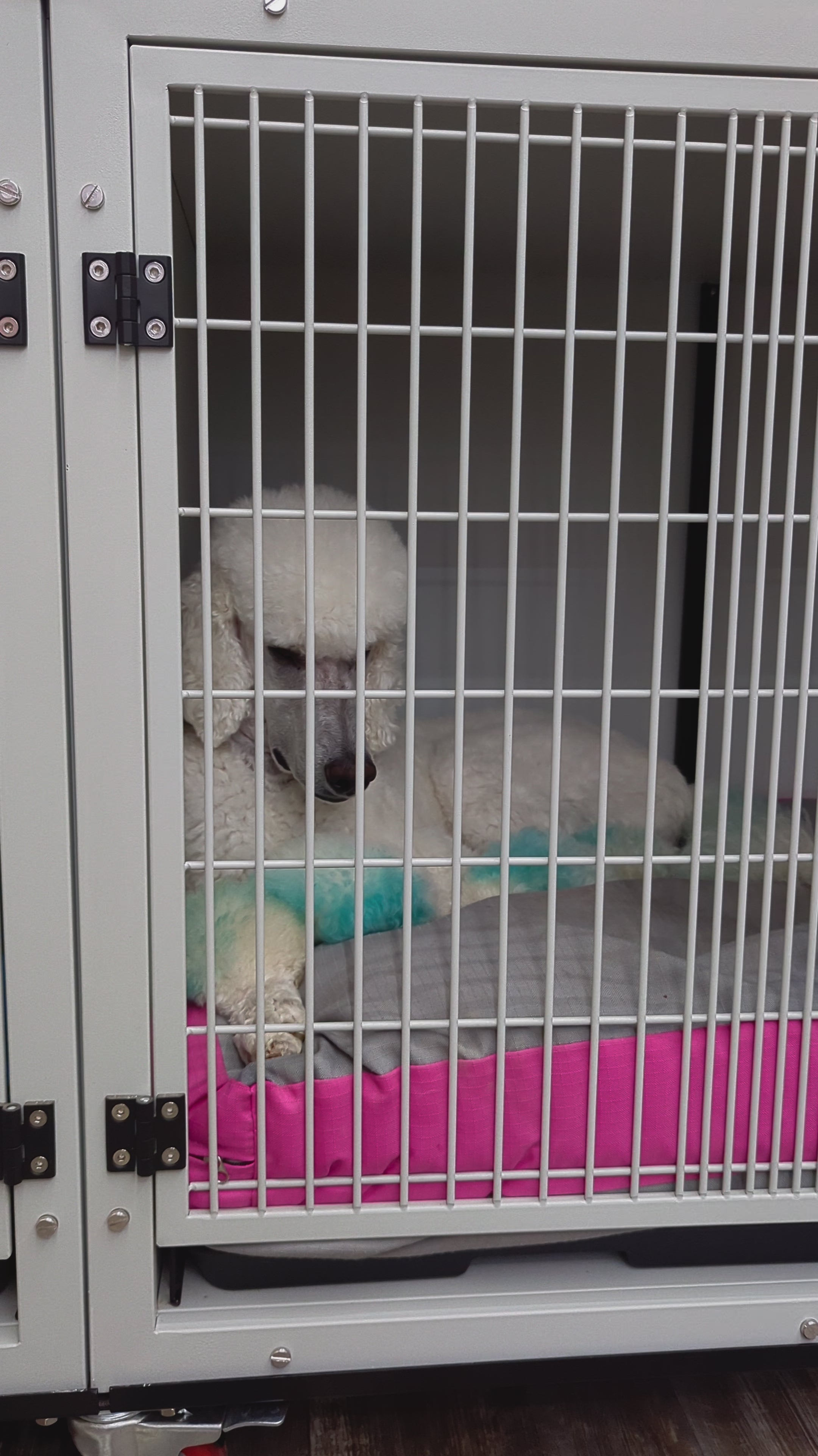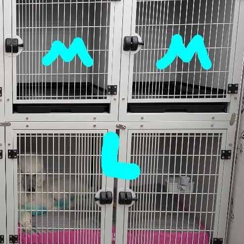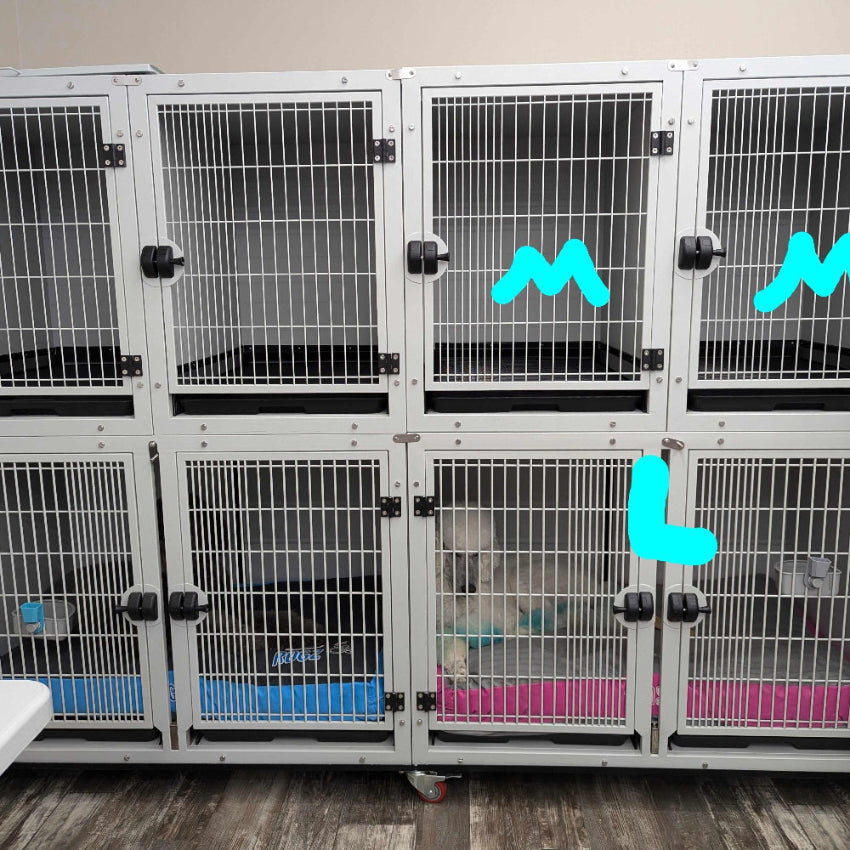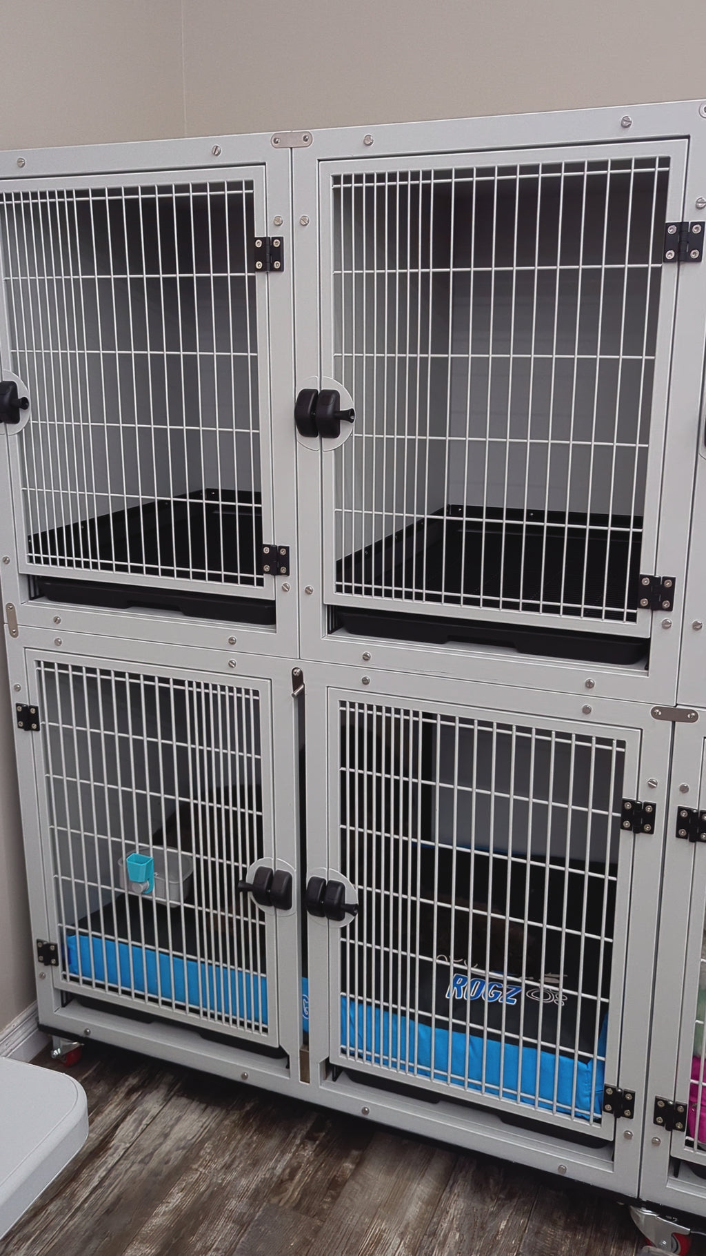 Note from Joanne: I have used the cheaper version of this kennel bank(all 201 no 304 or Aluminum since 2016 with it being right accross from my bathing area for years. I love how the white makes it feel pretty , easy to clean and cheerful. Clients like it too, I put comfy beds with a washable pee pad on top, many of my dogs ask to go snuggle in there. the large bottom crate became my own dogs personal space, until i needed it for big dogs.