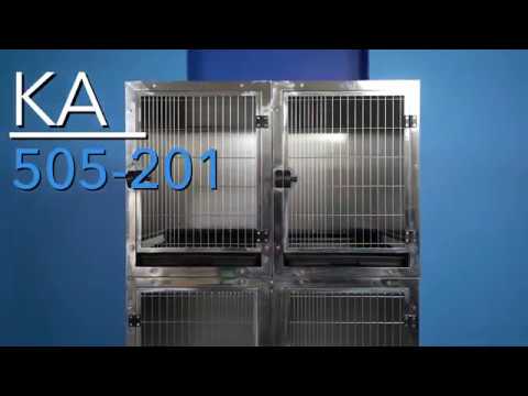 Removable doors, dividers, floor grates and pans allow for easy cleaning. They are equipped with 4" heavy duty zinc plated casters which rotate 360° for easy maneuverability. The front wheels lock, allowing the assembled kennel to remain stationary. Plastic liquid guide plates have been added to prevent liquid waste leakage along the side walls. The tray is formed from plastic blow mold.