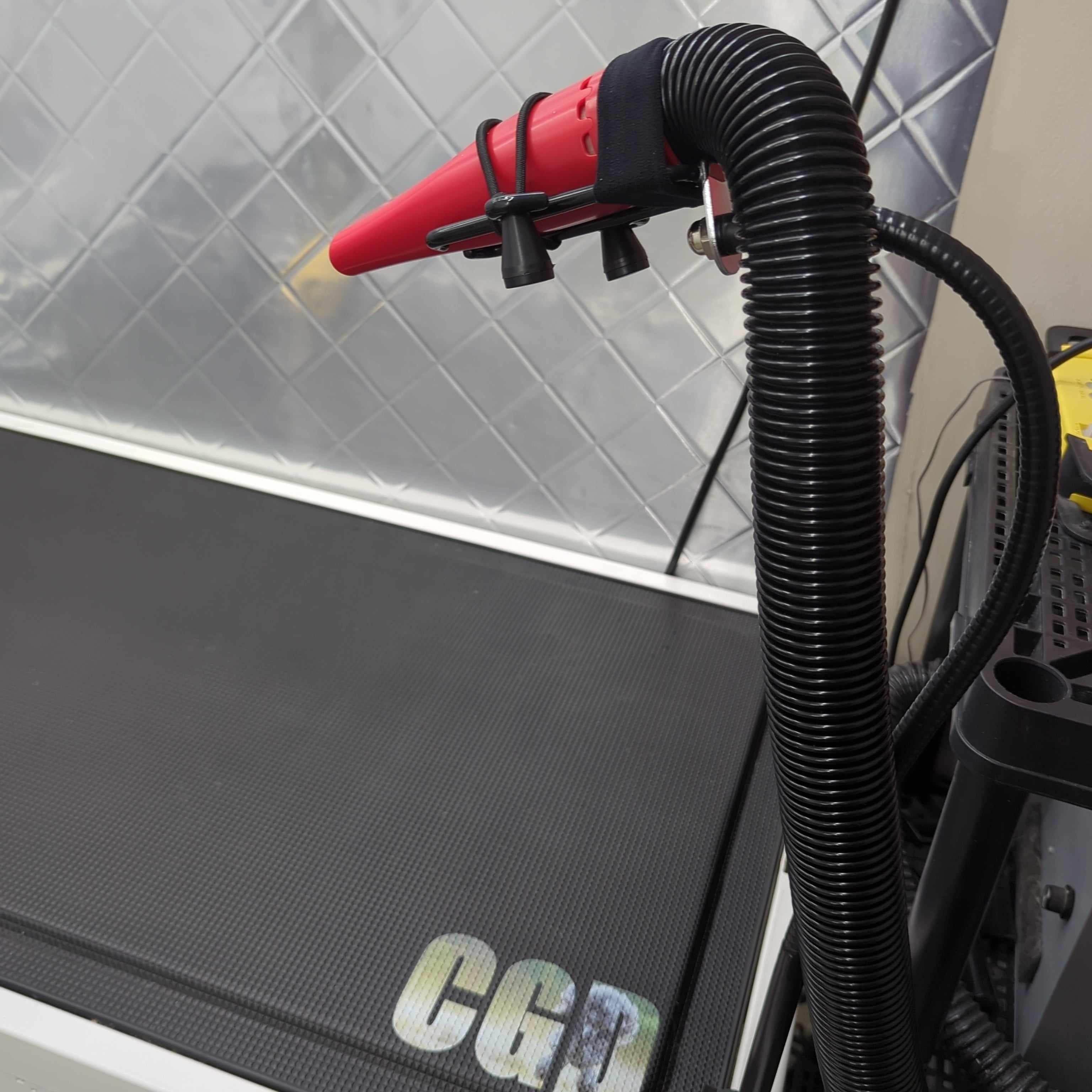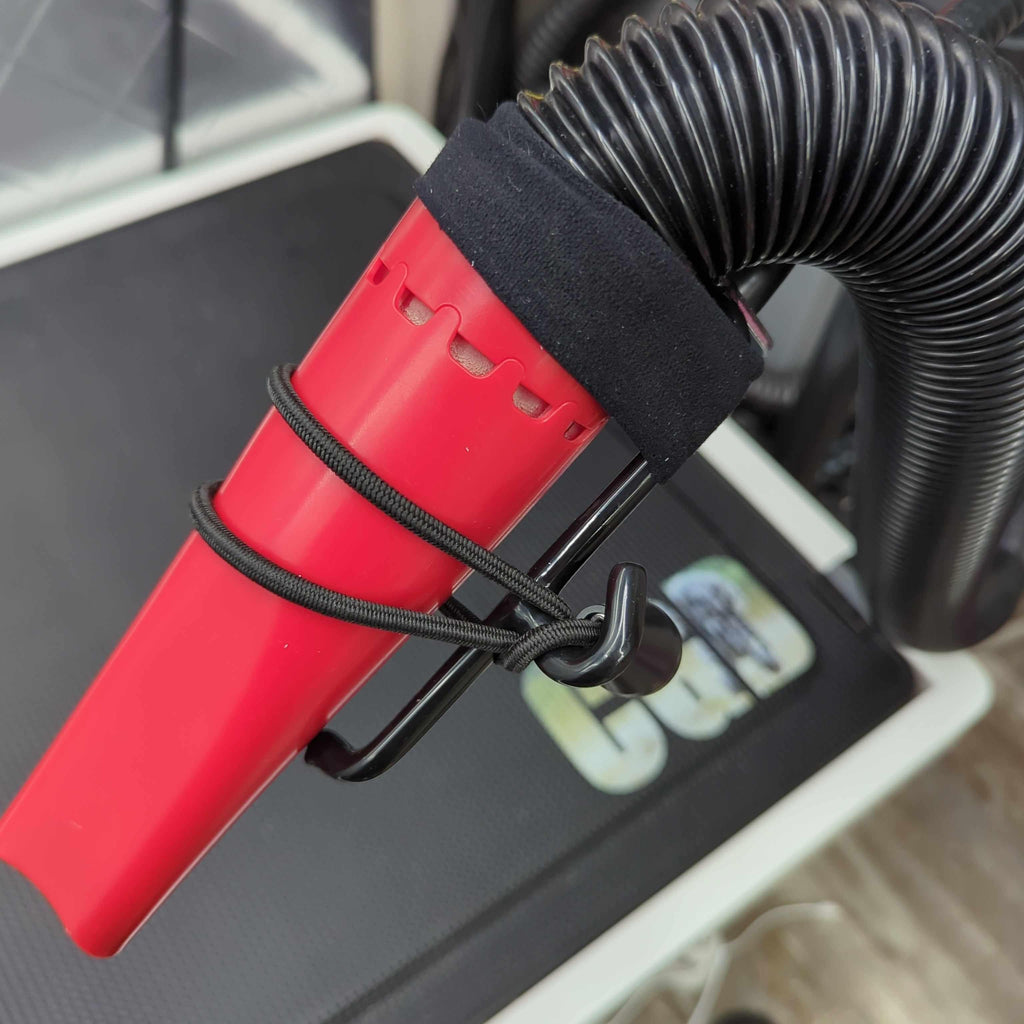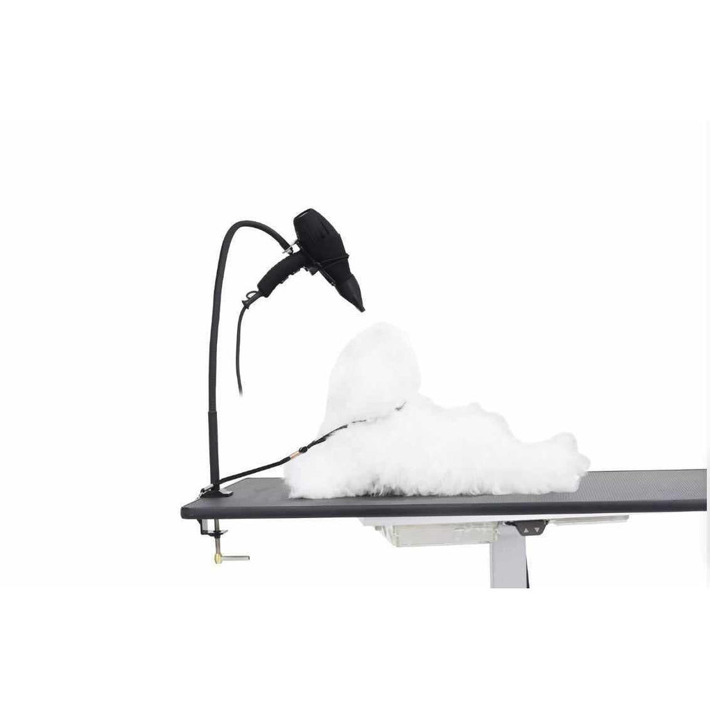 Sick of neck cramps from holding your hand dryer? armpit burns from tucking your HV hose under your arm? Get an effective Groomers Third arm that  quickly adapts to ANY dryer nozzles, whether it is a handheld, a HV or similar.