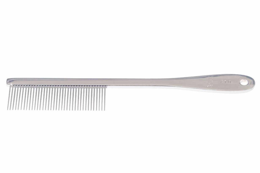 This medium toothed comb is used for removing knots and tangles, for general combing or for the removal of fluffy undercoat. May also be used after brushing to check for any mats left in the coat. If necessary use a fine or extra fine comb to be sure all mats have been removed.