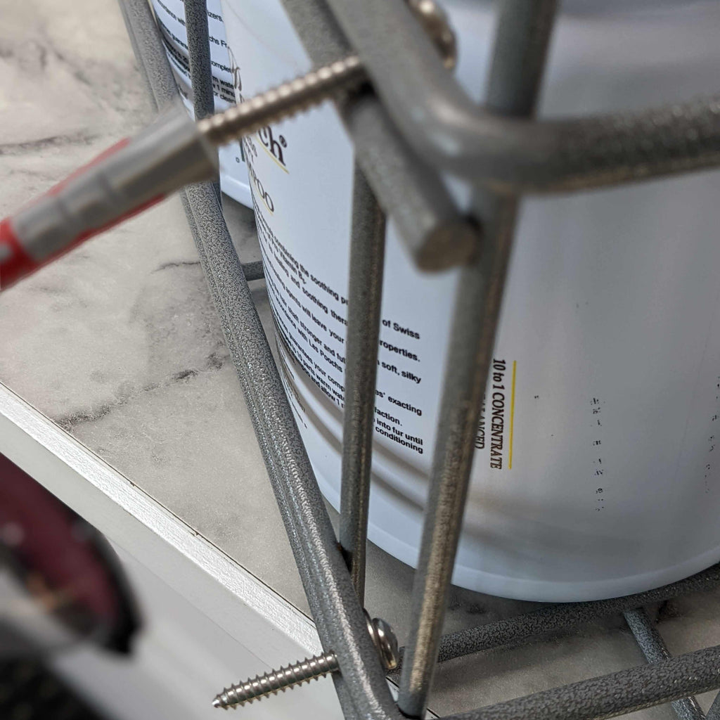 peut contenir 4 gallons, ou 3 hydres de 5 litres ou Melanie Newman. Contient parfaitement le K9 5,7 litres ! Ce support mural est livré avec des rondelles et des vis, mais je suggère d'utiliser des vis plus longues (et des rondelles plus grosses), surtout si votre cloison sèche est épaisse. Montez dans un poteau ! Les doubles barres à l'arrière le rendent réglable en fonction de l'emplacement des vis. (voir photos)