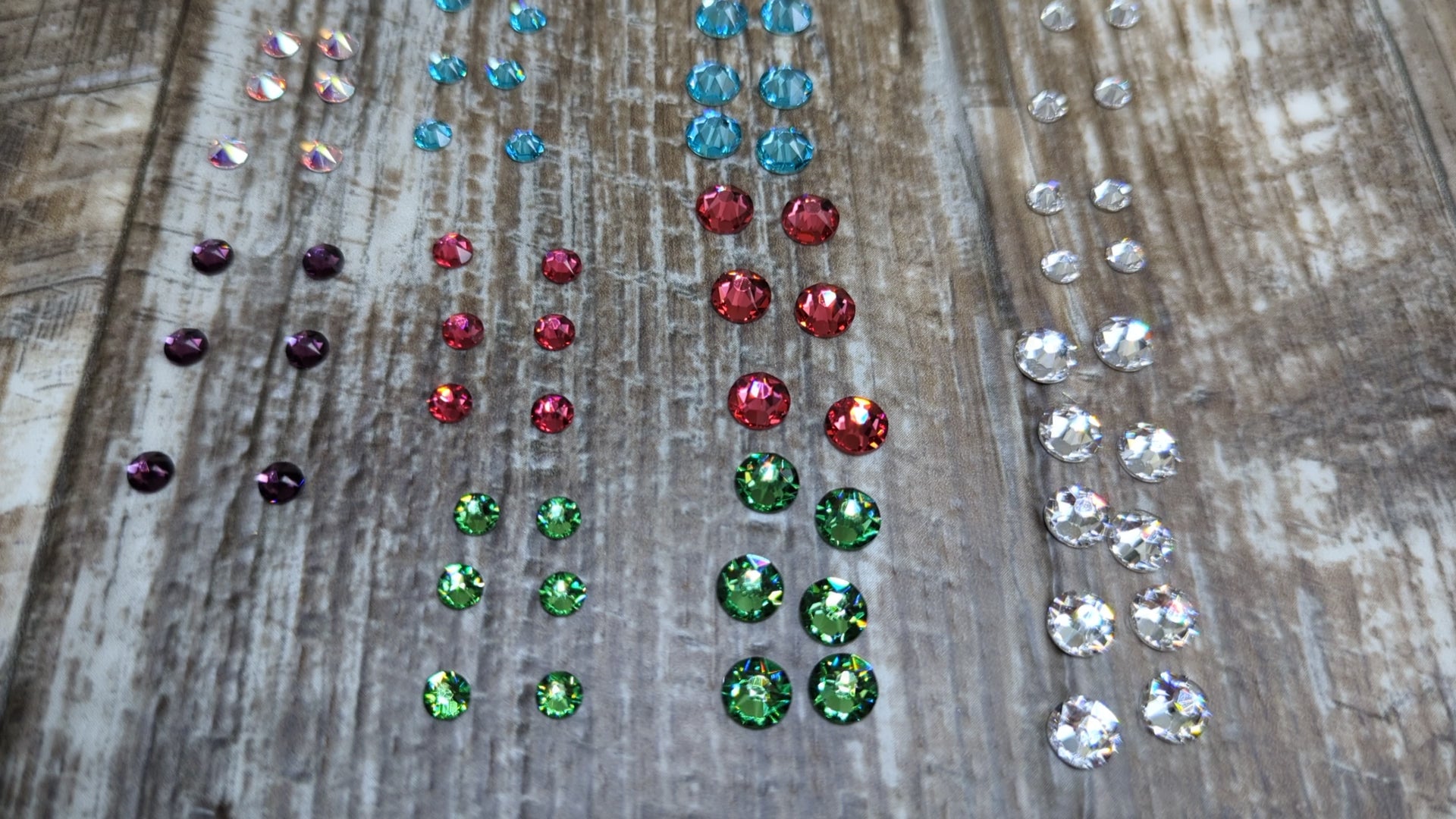 6 Small en : Rose Rubis, Vert Veridian, Vert Emeraude, Bleu Sarcelle, Violet Améthyste, confettis, Paon (donc 3 "paires" de chaque couleur)
