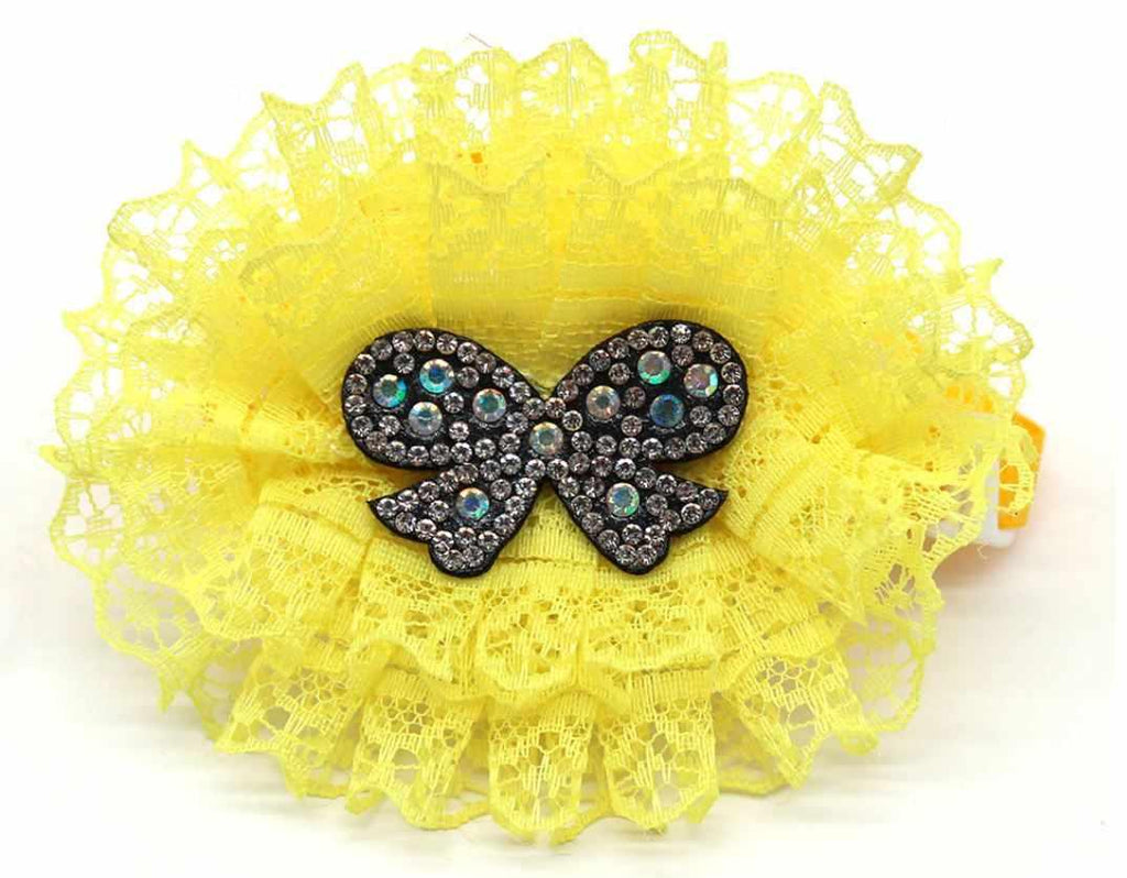 Comporte des couches de dentelle à volants sur le col réglable, un centre strass bling ajoute cet effet 3D.