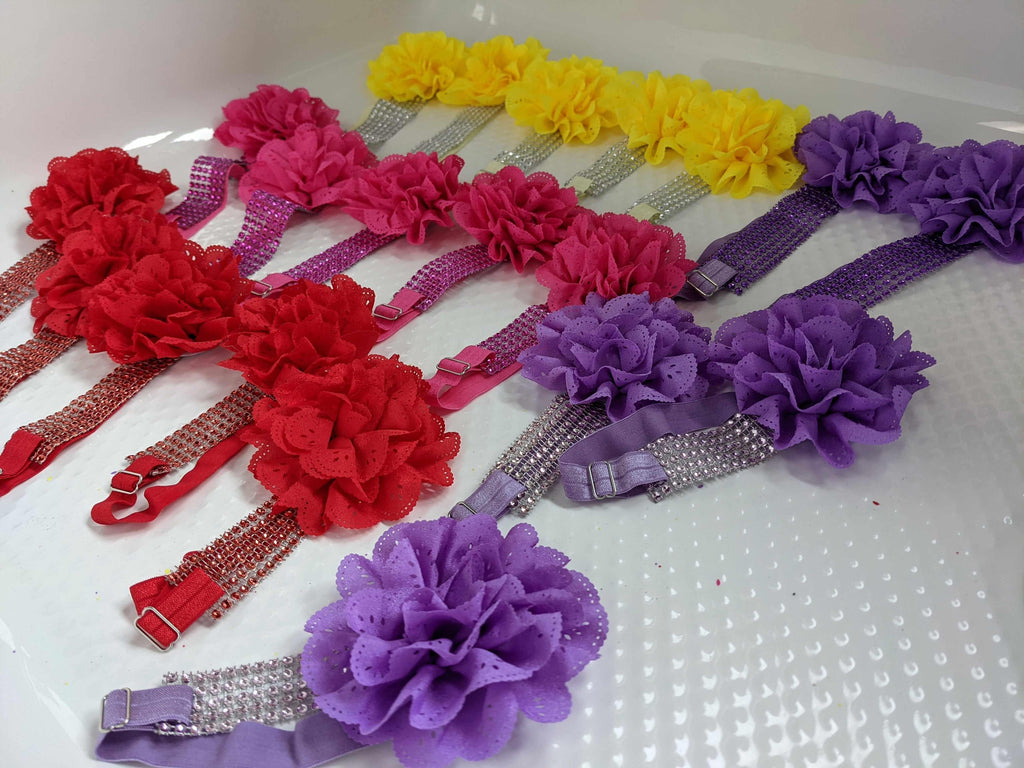 le tout avec la grande fleur à œillets à volants, un emballage scintillant et un ruban assortis/coordonnés. et des curseurs pour ajuster la taille.