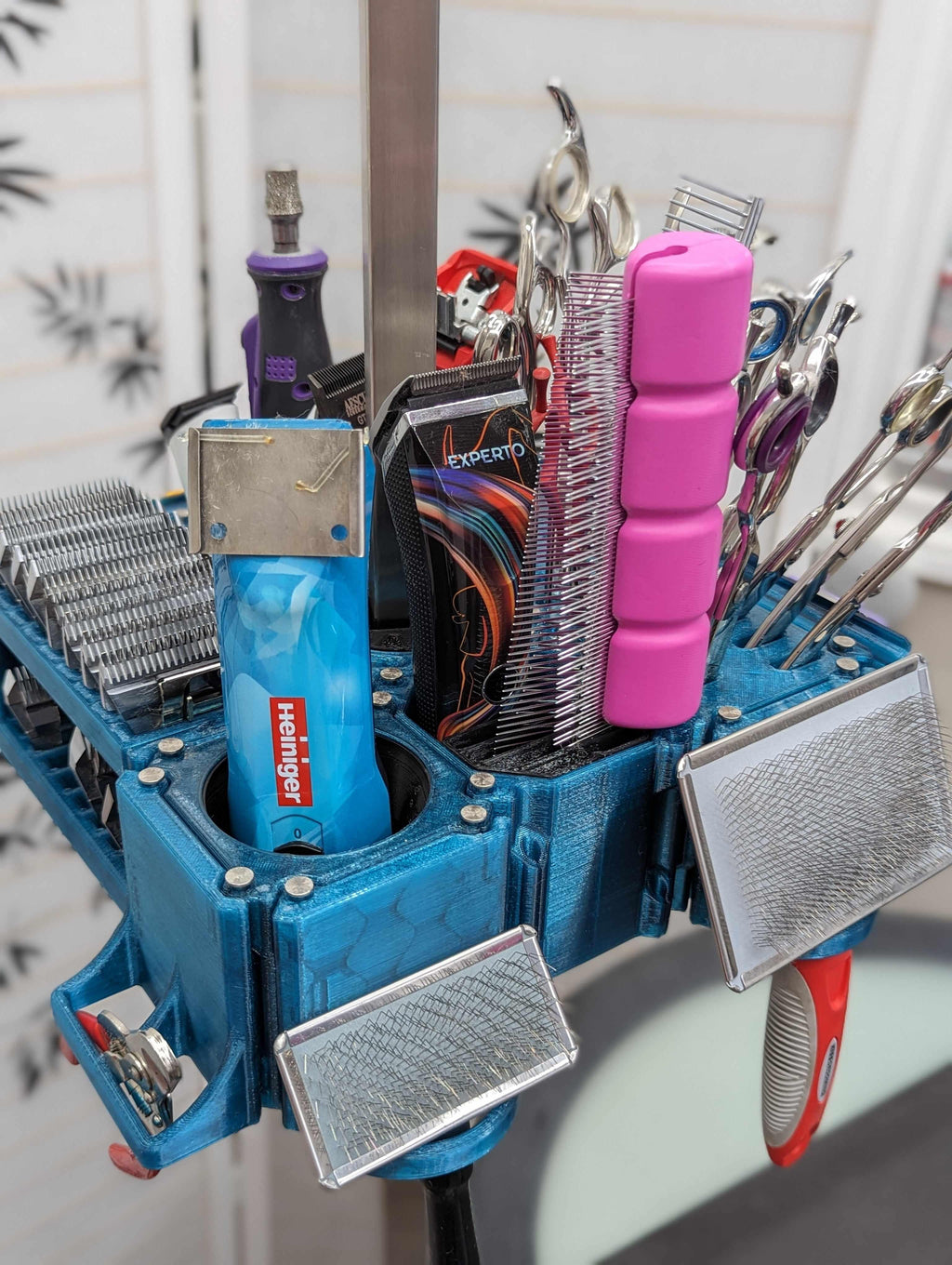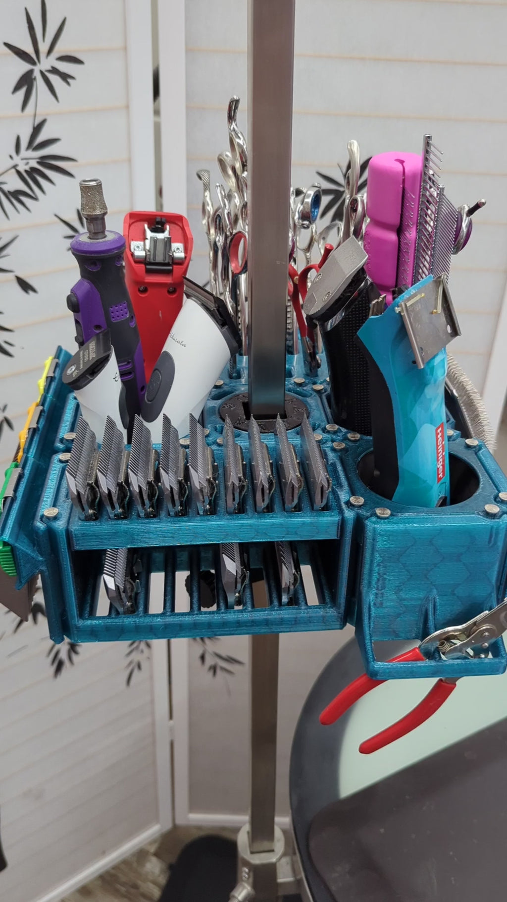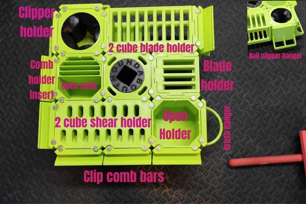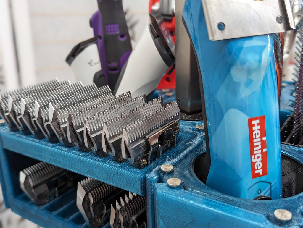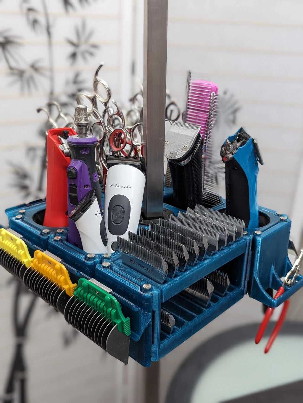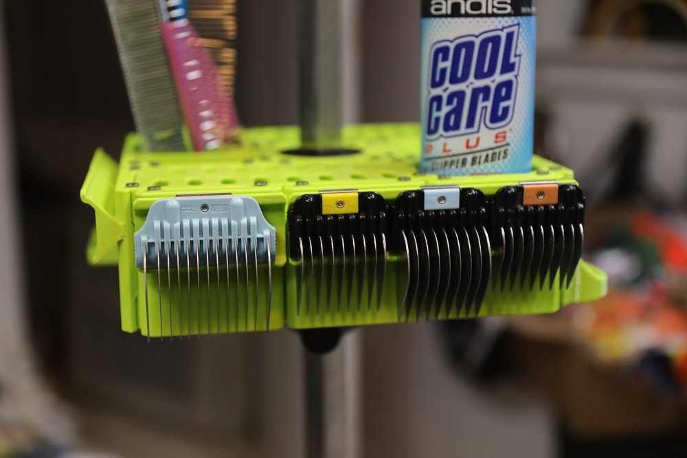 Nous avons un support de tondeuse sans fil, un insert de support de peigne, un support de lame, un support ouvert, un support de cisaillement, un support de brosse, un support de coupe-ongles, une barre de peigne à clip, et plus encore !