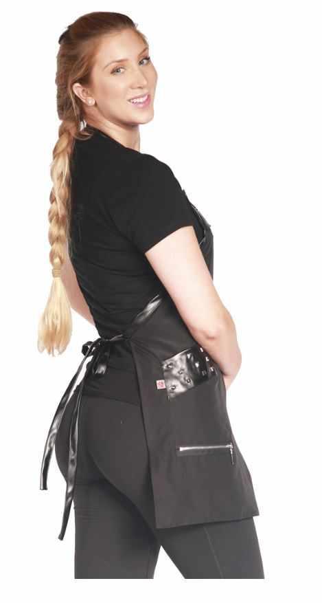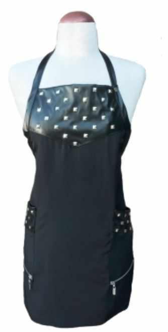 Idéal pour les toiletteurs d'animaux, les coiffeurs, les esthéticiennes, les cheveux, l'eau, l'eau de Javel. Comprend deux poches avant zippées, une bordure en simili cuir, des clous carrés en métal, des couvertures à l'avant et à l'arrière, des ceintures à nouer latérales. Taille unique allant du petit au 2XL.