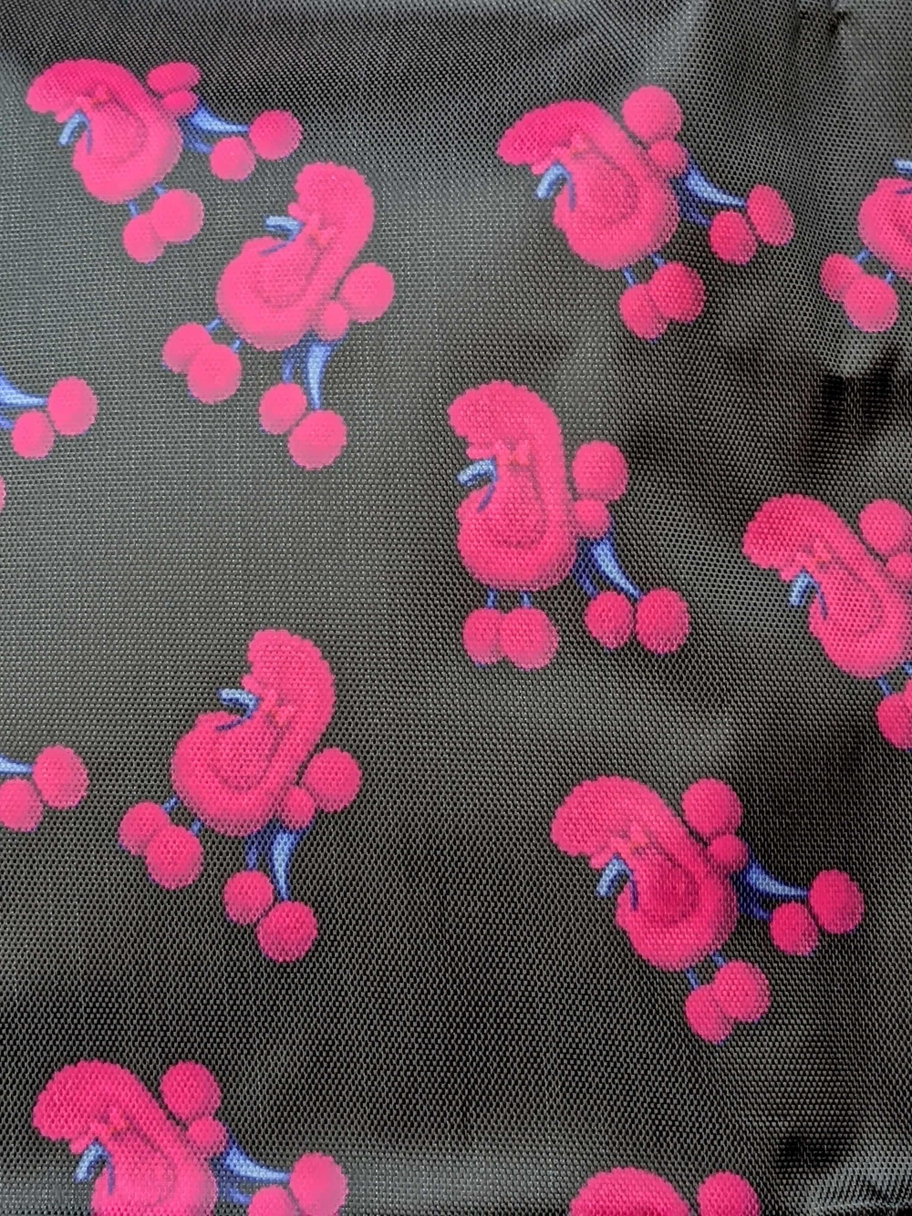Ce tablier est vraiment bien fait et robuste. matériau résistant qui peut manipuler les ongles des chiens et s’appuyer contre les surfaces. Très joli design de caniche.