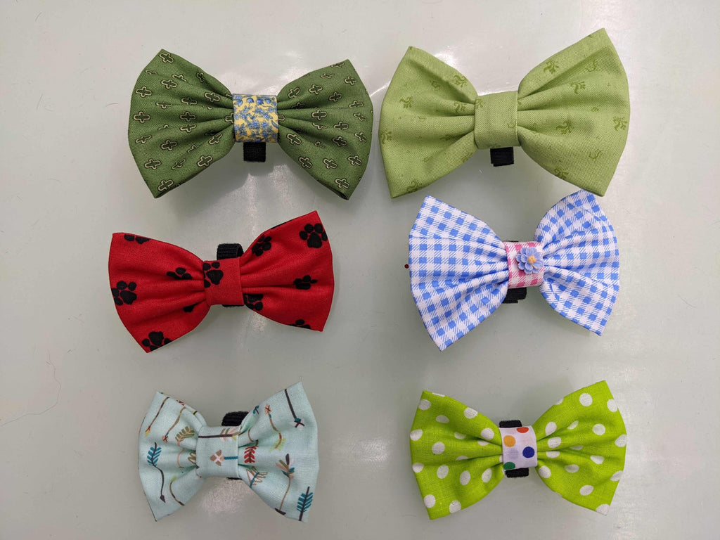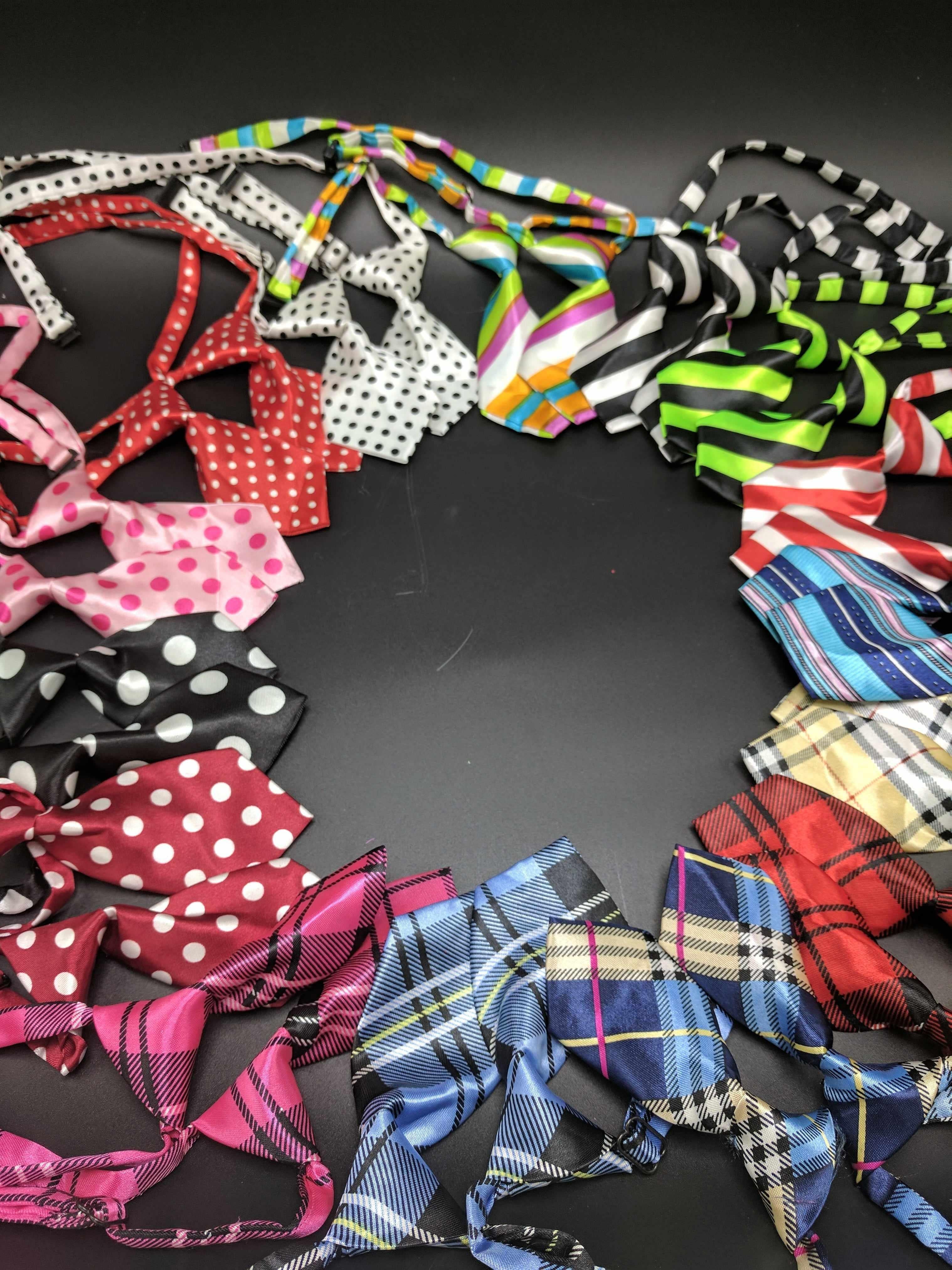 Noeuds papillon Présentez une bande assortie au centre ou en embellissement. Ajustement personnalisé à chaque collier ou harnais avec des sangles Velcro réutilisables qui font de ces embellissements un souvenir.