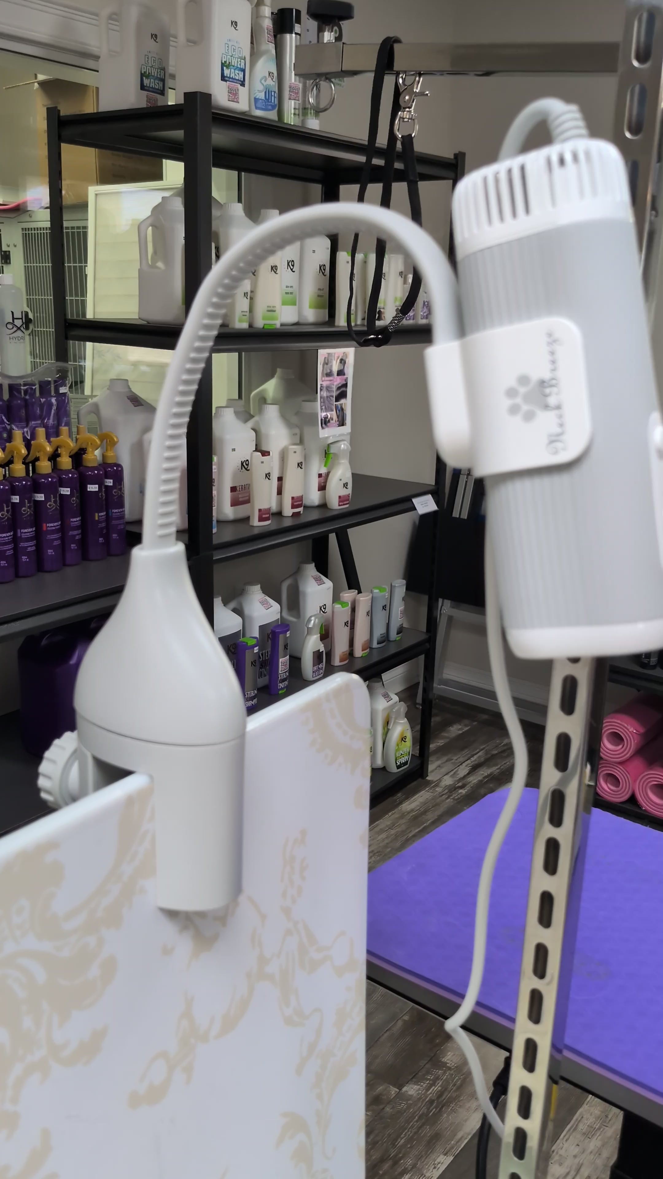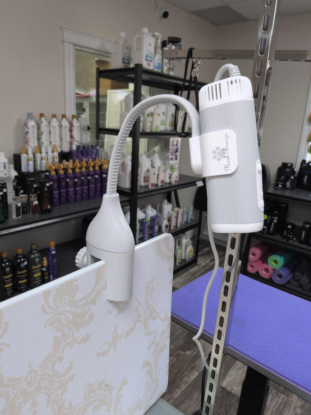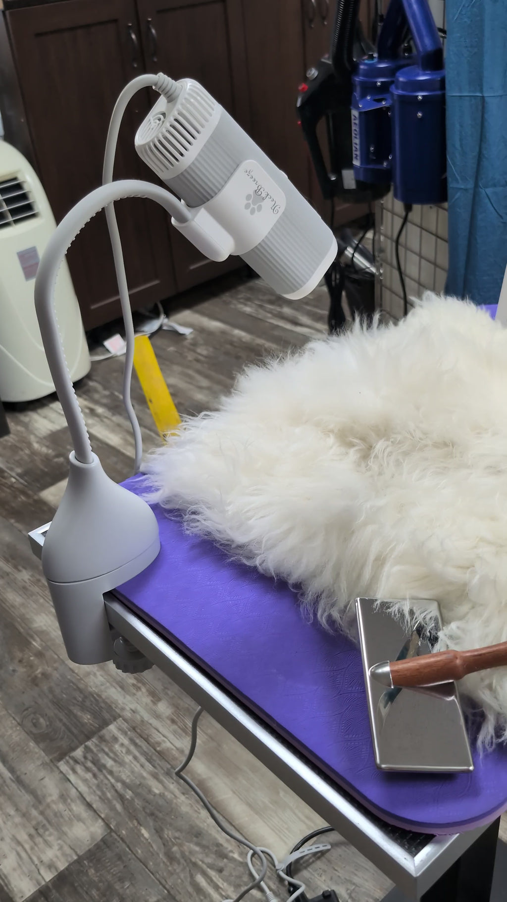 *Note from Joanne: I originally assumed this was more aimed at show handlers, but I quickly found grooming regular clients that are shy of big hv or even my wall mounted fluff dryer actually tolerated this dryer MORE! i use mostly for heads, but have dried a lot of my shy guys fully. yes you can have your hair down.