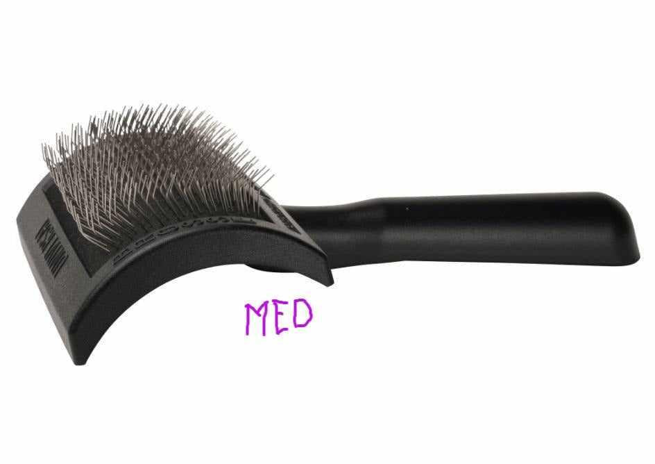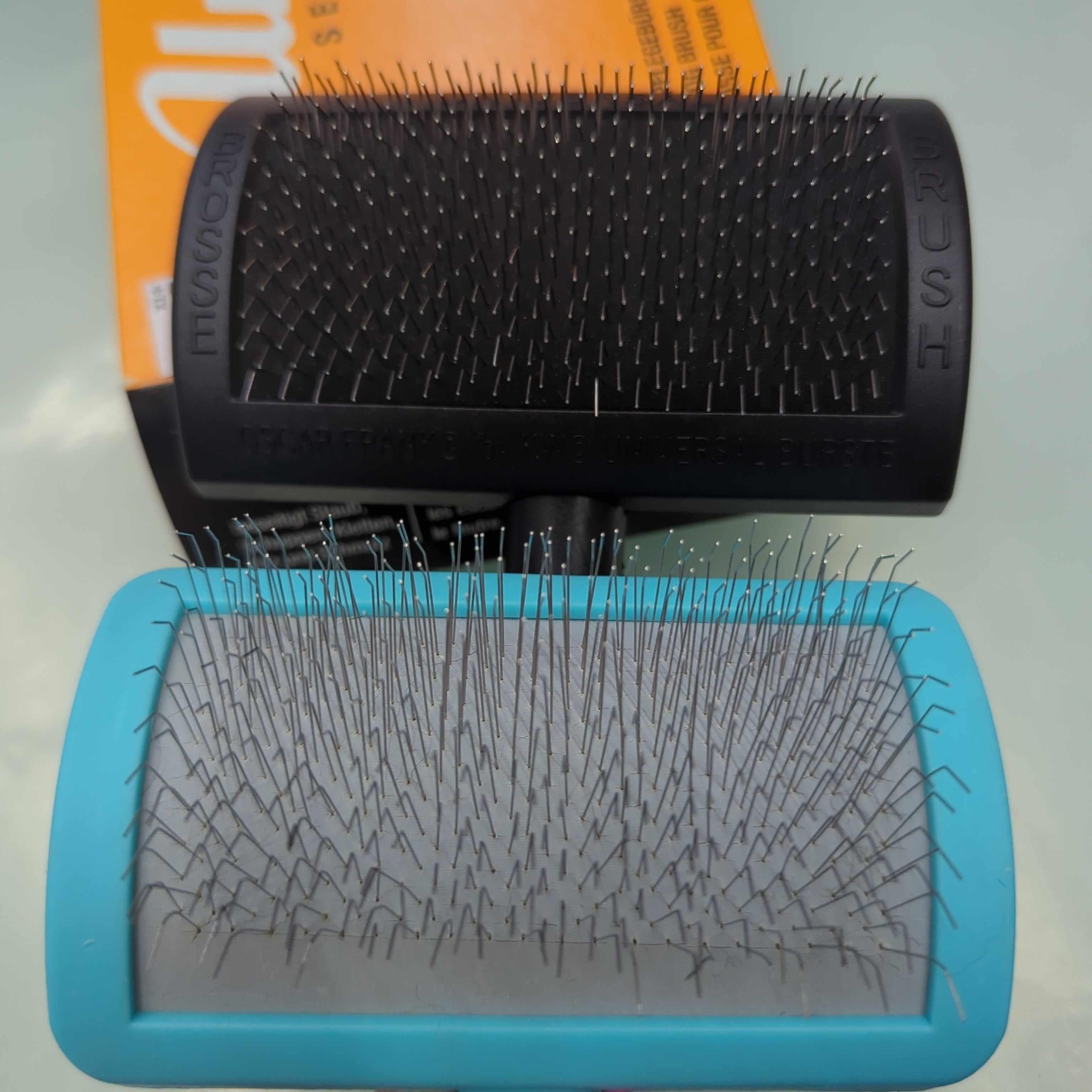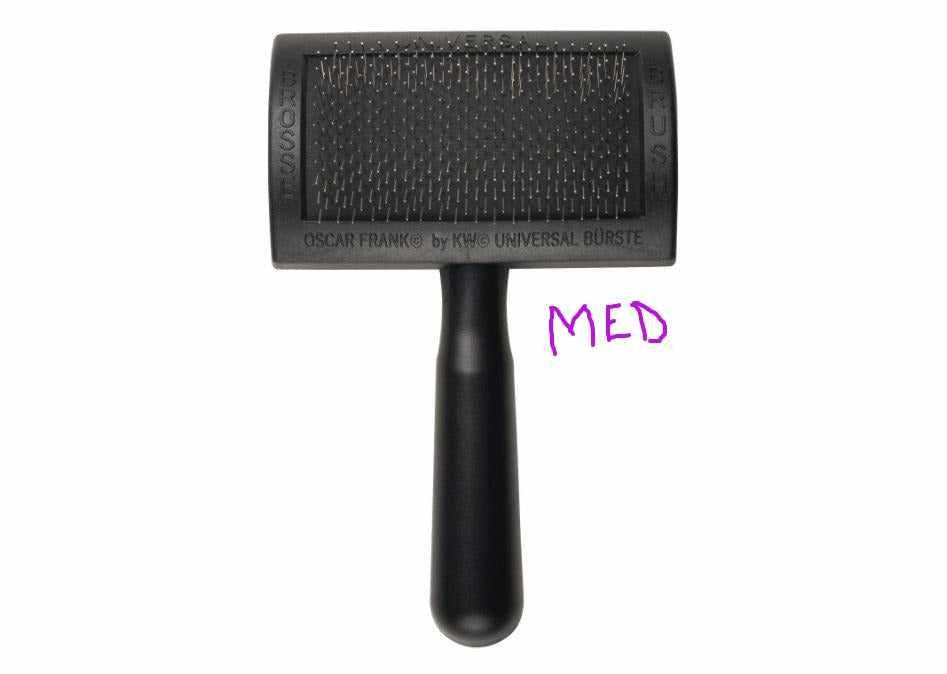 Pour les races de petite à moyenne taille ou les zones de brossage plus petites, nous recommandons le Frank's Universal Standard Medium Slicker Firm (voir ci-dessous).