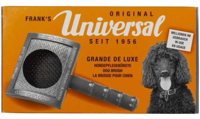 Ces pinceaux sont un véritable classique parmi les slickers. Grâce à leur emballage accrocheur et à leur design allemand authentique, ils sont un produit populaire depuis de nombreuses années. Le Frank's Universal Grande de Luxe Large Slicker est doté d'un tampon de brosse légèrement plus plat et peut être utilisé pour toutes les races de chiens qui n'ont pas les poils courts. En raison des épingles plus fermes, ce lisseur convient particulièrement aux chiens au pelage plus épais et aux manteaux qui ont plus de sous-laine ou d'enchevêtrements.