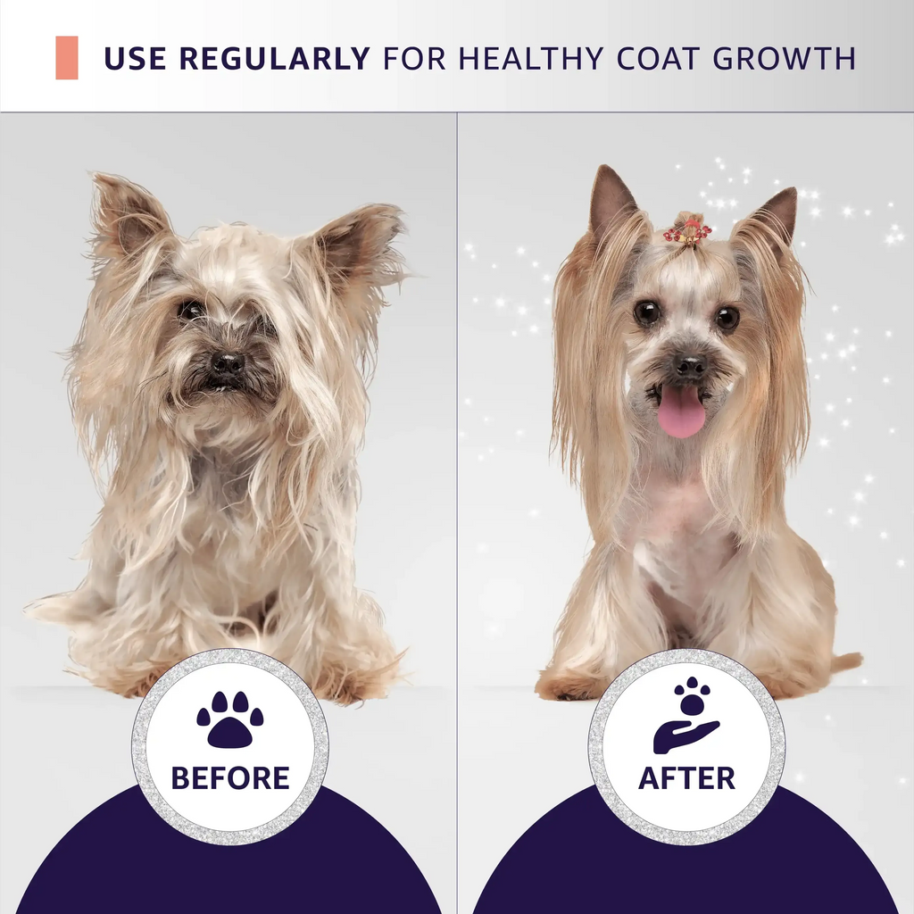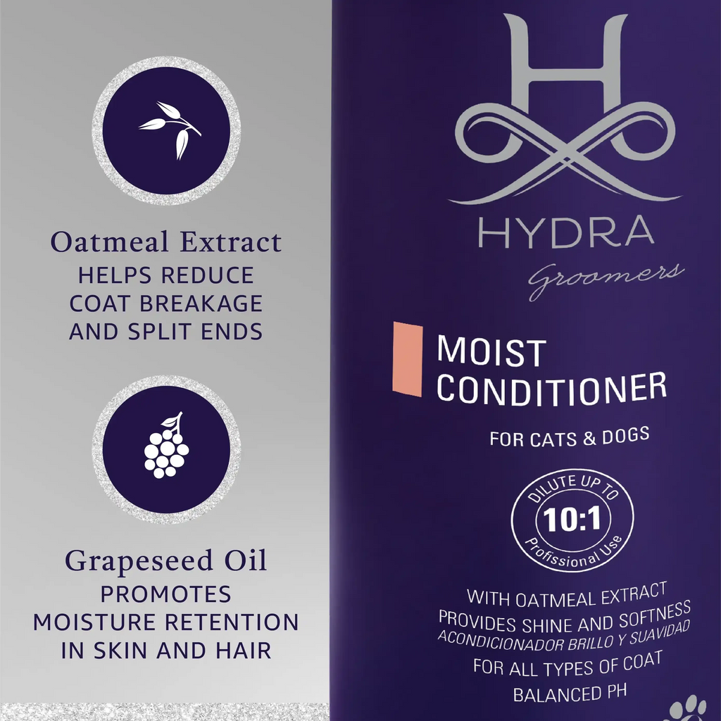 Note de Joanne : Ce revitalisant est idéal à tous les niveaux et peut être combiné avec des traitements localisés de n'importe lequel des masques. J'utilise le shampooing et le revitalisant Moist dilués à 10-1 sur des moutons au pelage incroyablement épais et ils étaient si faciles à coiffer et à coiffer. ajoutez du Demat ou un spray thermique après pour augmenter le facteur de glissement dans les manteaux laineux épais.