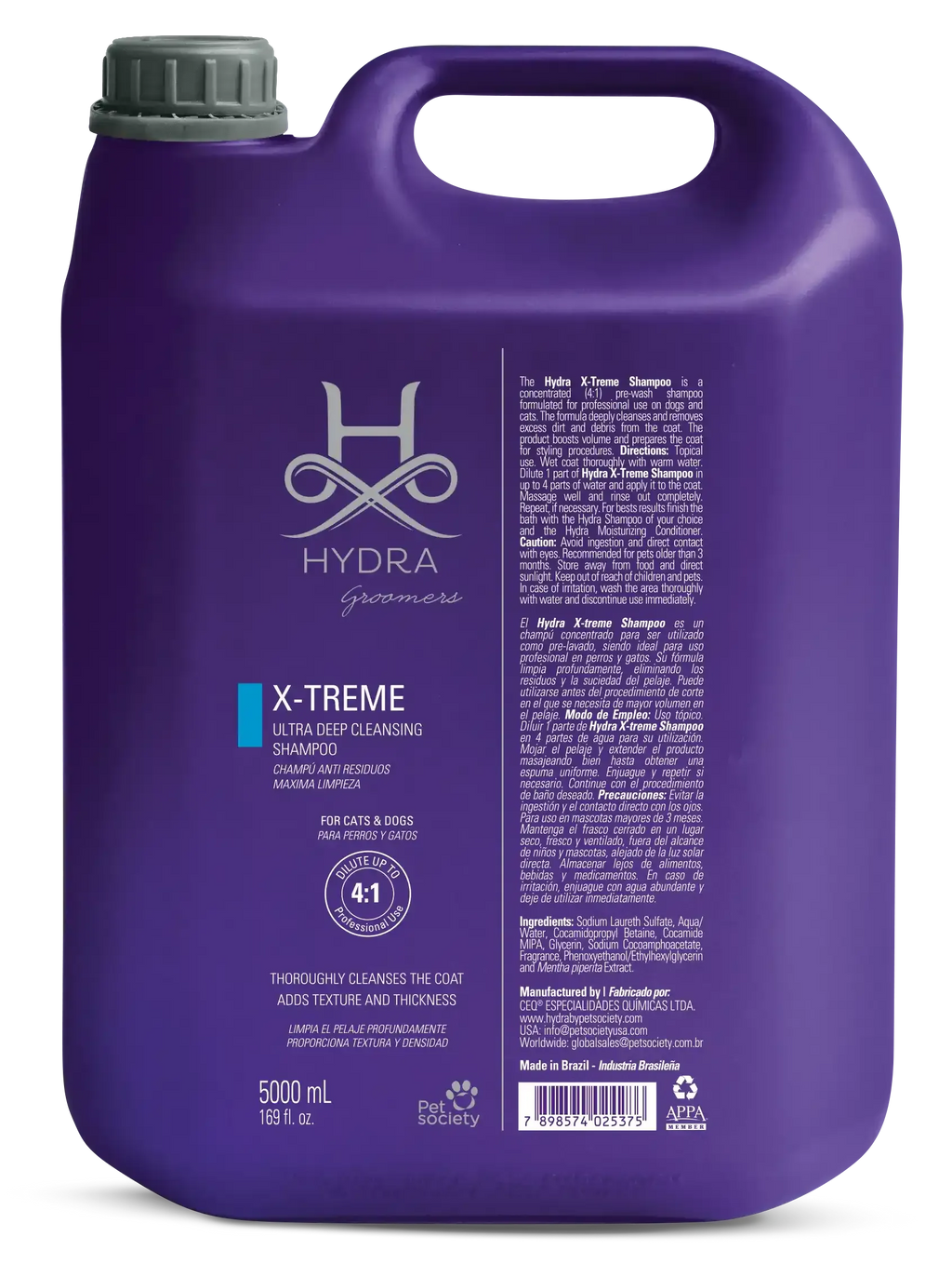 Le shampooing dégraissant Hydra, idéal pour ajouter du volume et éliminer les débris du pelage de votre animal.