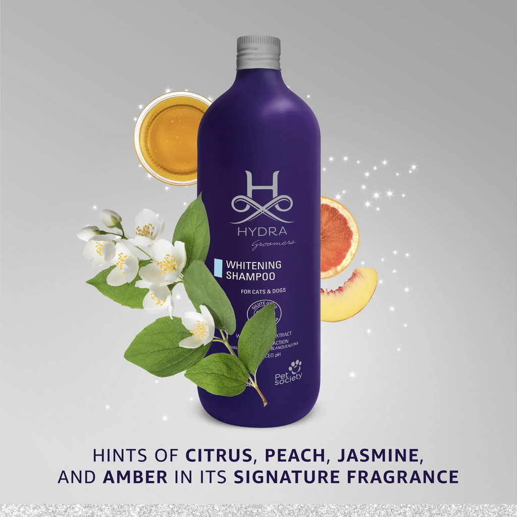 Le shampooing blanchissant haut de gamme d'Hydra, idéal pour nettoyer et éclaircir la couleur de votre animal