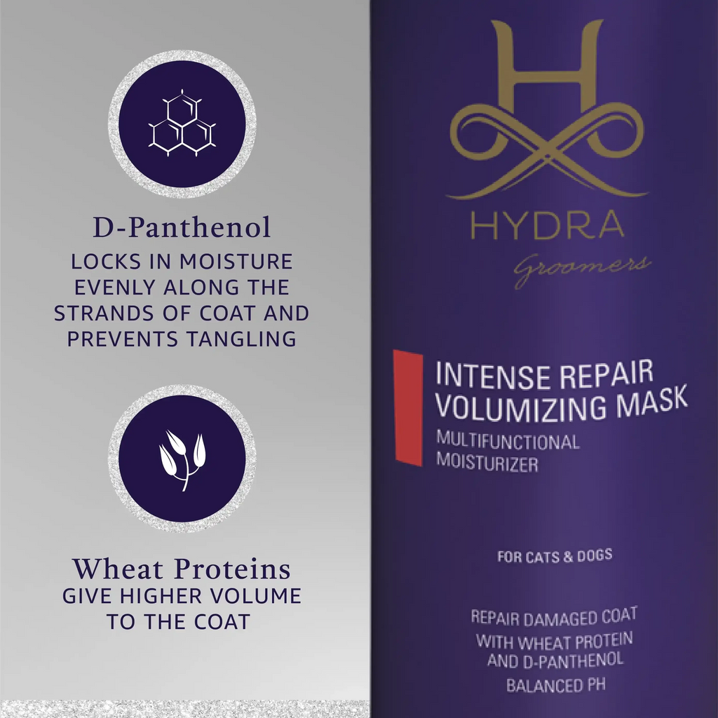 Note de Joanne : Ce masque est incroyable pour les manteaux duveteux sur lesquels vous voulez toujours du volume mais qui ont besoin d'humidité ! Je l'ai utilisé sur mon caniche et j'ai obtenu des résultats étonnants. mieux associé au shampooing Hydra Volume