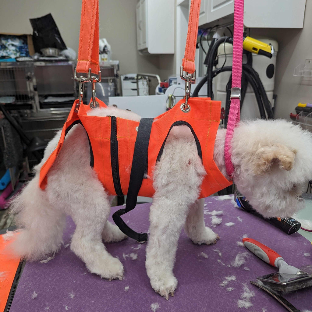 Les hamacs de toilettage sont essentiels dans chaque salon pour aider à se toiletter en toute sécurité. Les modèles à deux pattes et à 4 pattes ainsi que plusieurs tailles permettent une utilisation sur n'importe quel animal de compagnie.
