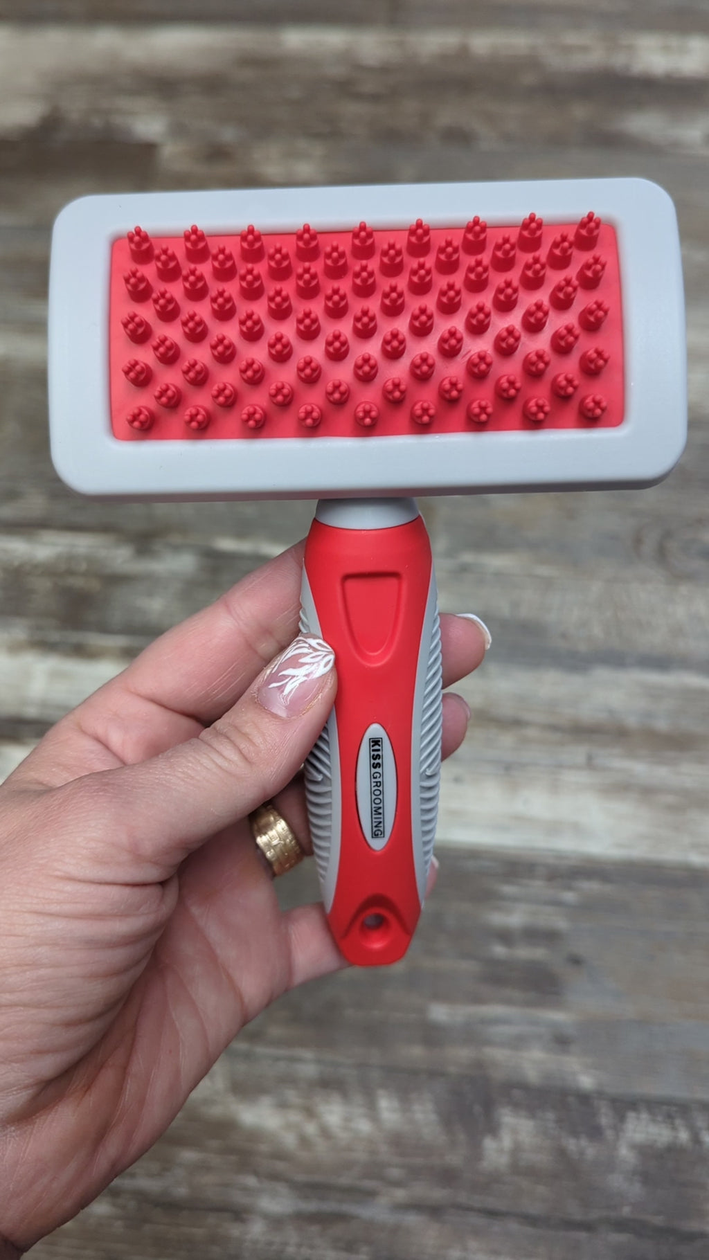 Sur les poils secs avant le bain, utiliser pour éliminer l'excès de poil et stimuler les huiles. excellent moyen de éliminer les zones difficiles à carder comme les jambes. vous pouvez faire des allers-retours, ou comme un pinceau.