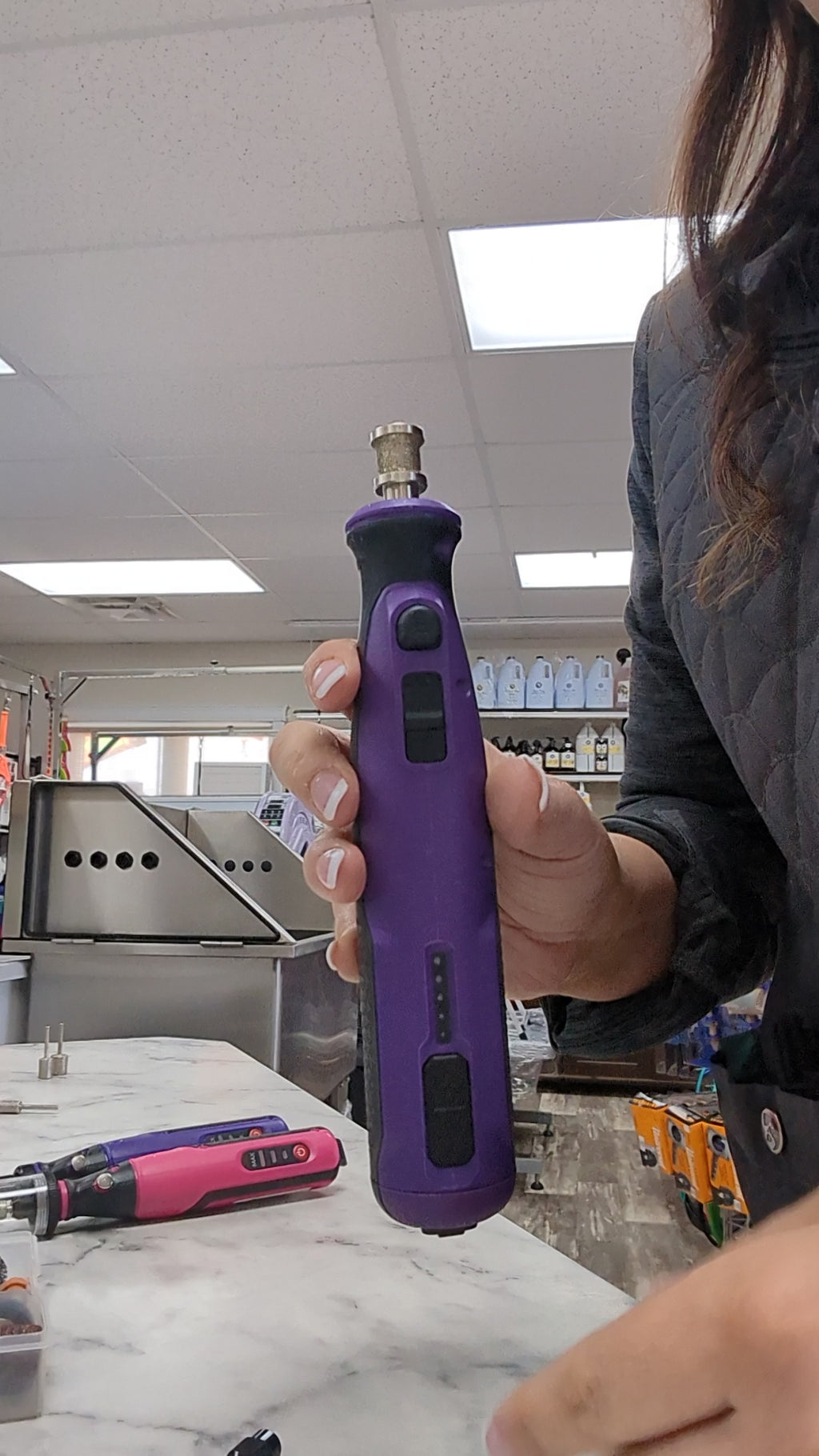 Présentation de nos outils rotatifs les plus récents et les meilleurs de tous les temps ! Maintenant, avec l'interrupteur d'alimentation près de la pointe de meulage, il est facile de l'allumer et de l'éteindre sans avoir à déplacer votre main vers le bouton d'alimentation. Plus besoin de tâtonner lorsque vous faites les griffes de votre chien !