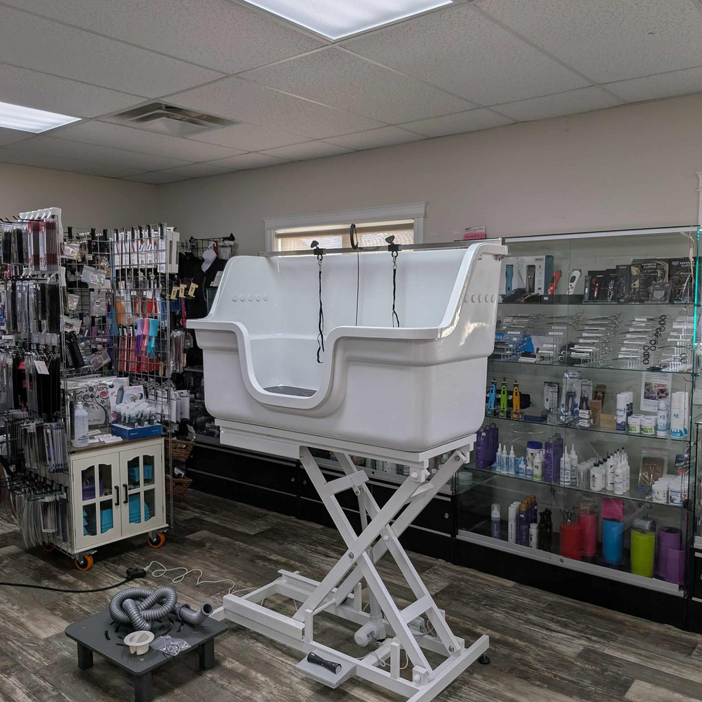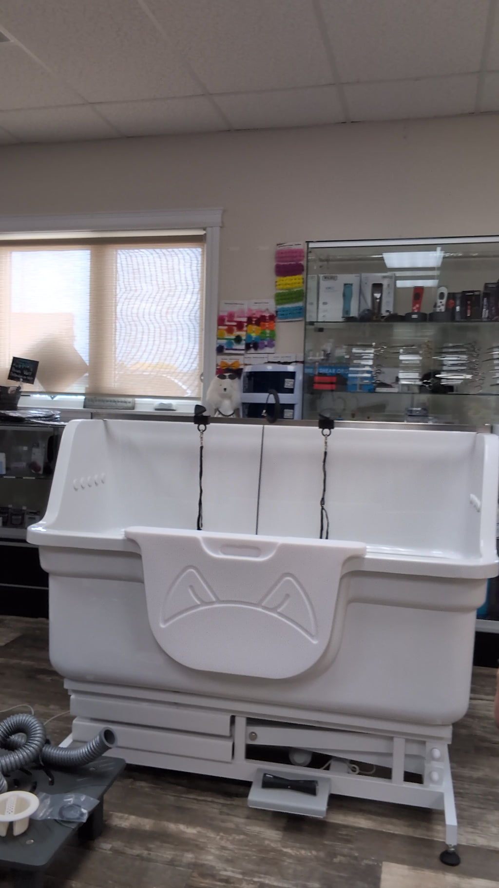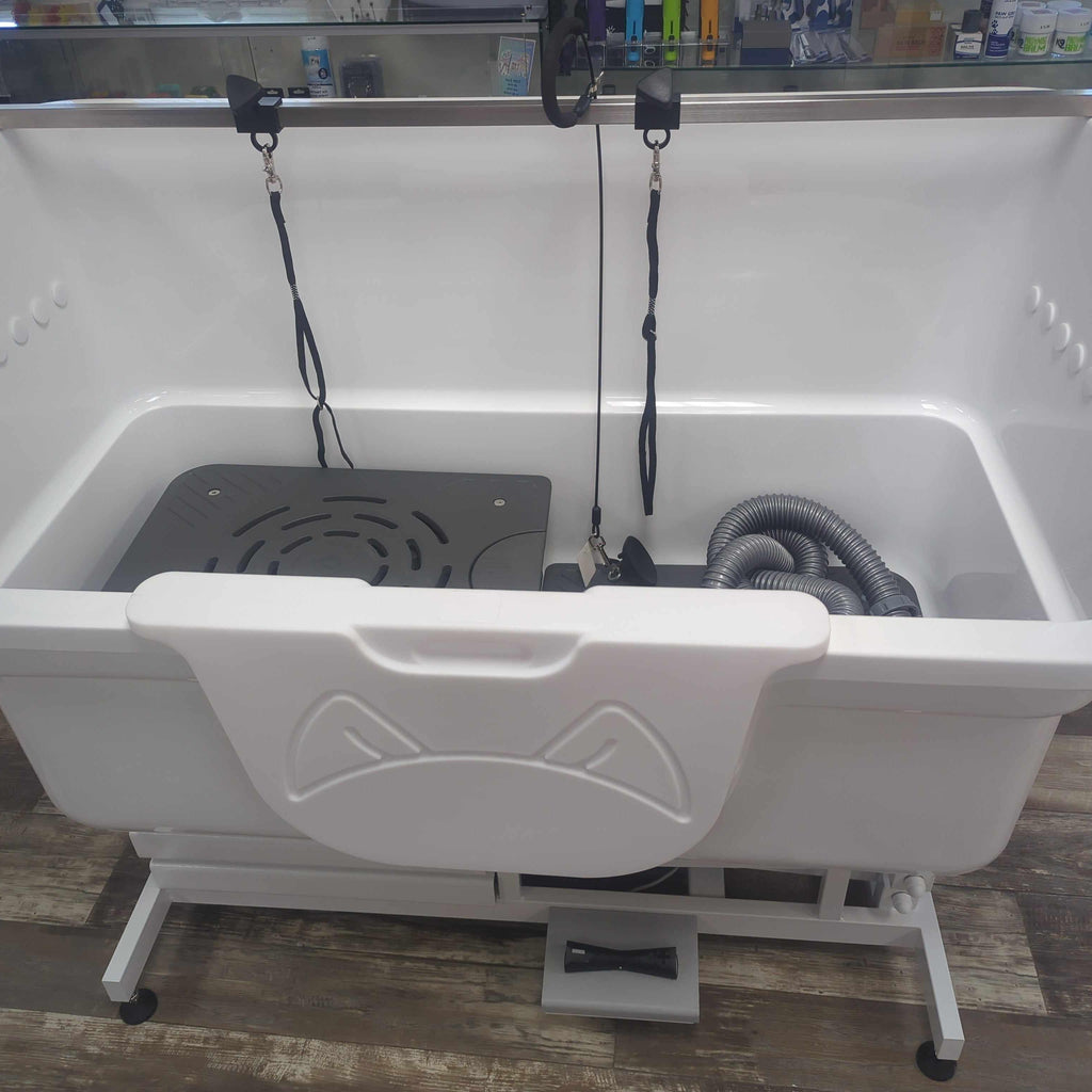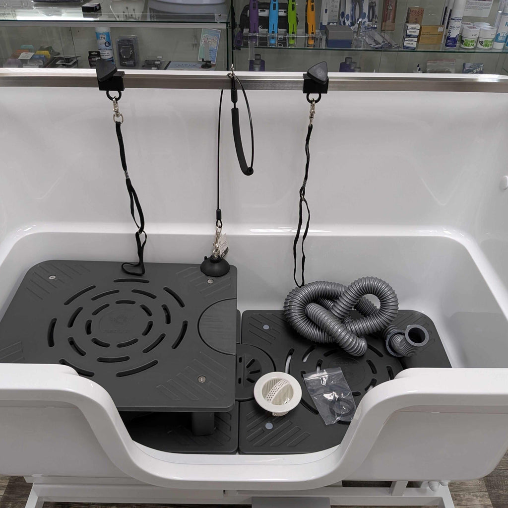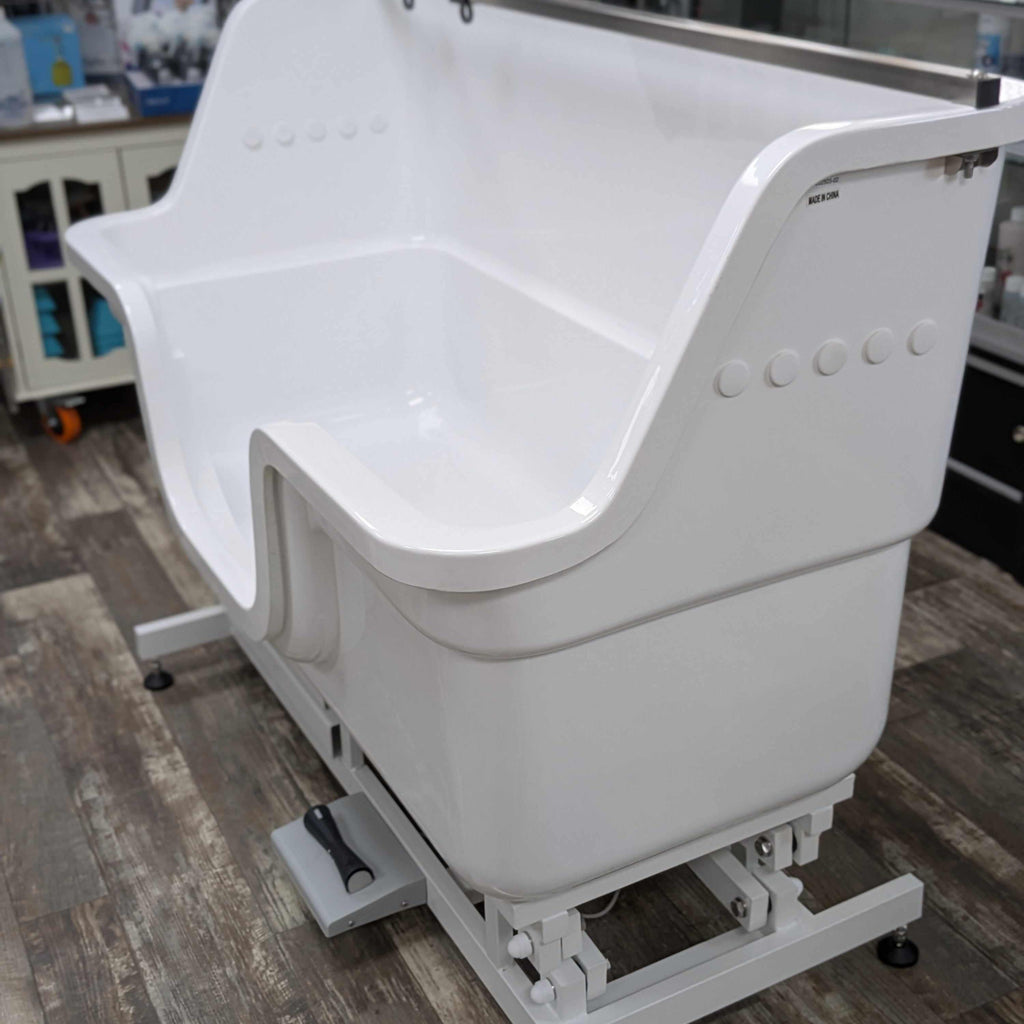 NEW Large Acrylic (USED to be the giant one, thats now called X-LARGE, thats 59" compared to the 50" large) has a Stainless steel overhead bar with adjustable rings to secure pet. Great tub for busy salon with lots of  xs- Large breeds. and Breeders, dog groomers,