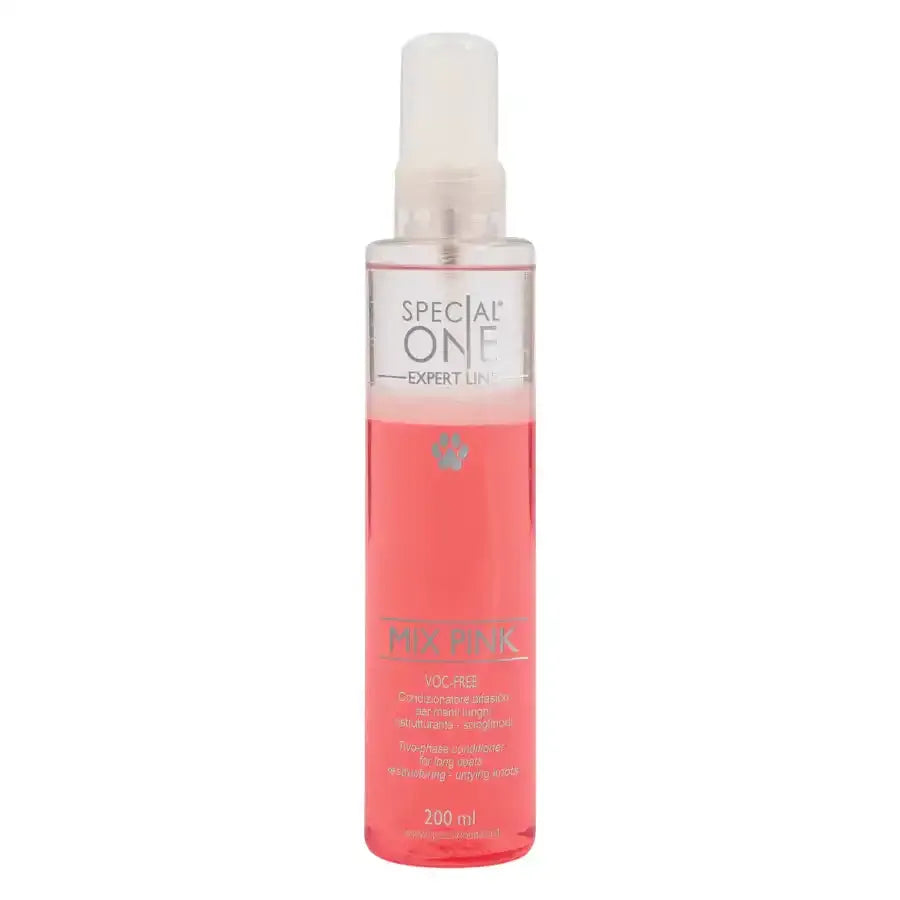 - Mix Pink Biphasic Conditioner ensures the natural waves stay well-defined while making regular brushing effortless, keeping the coat tidy and show-ready