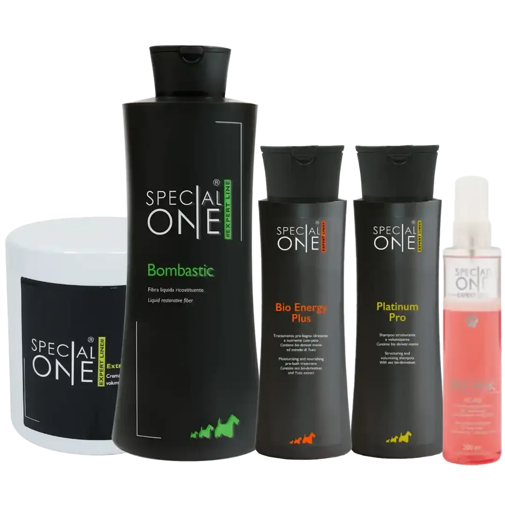Special One Semi-Rough Coats Care Kit provides everything to maintain, enhance, and protect a dog’s unique coat texture. Semi-rough coats are characterized by their medium texture, natural waves, robust keratinous primary hair, and a woolly undercoat.
