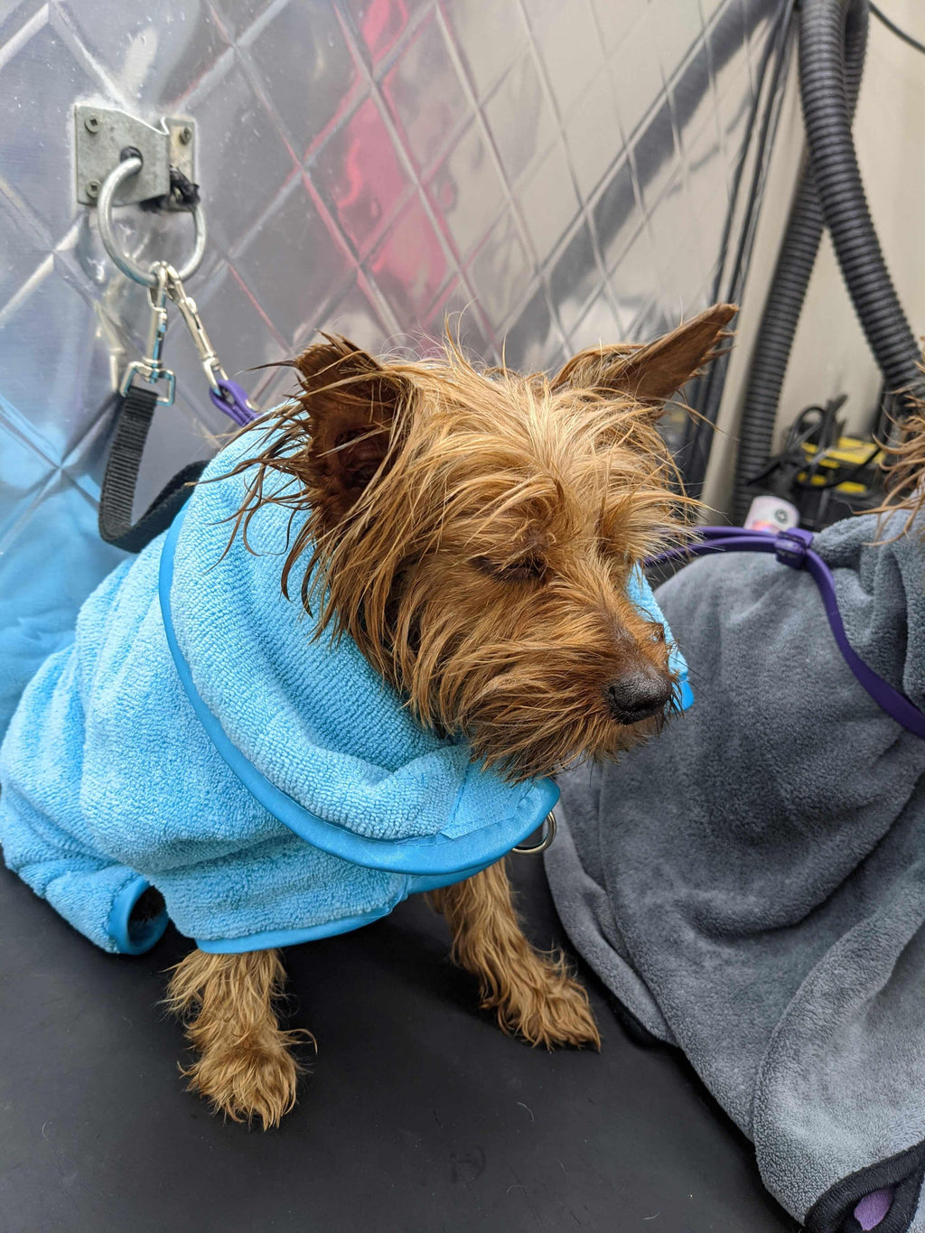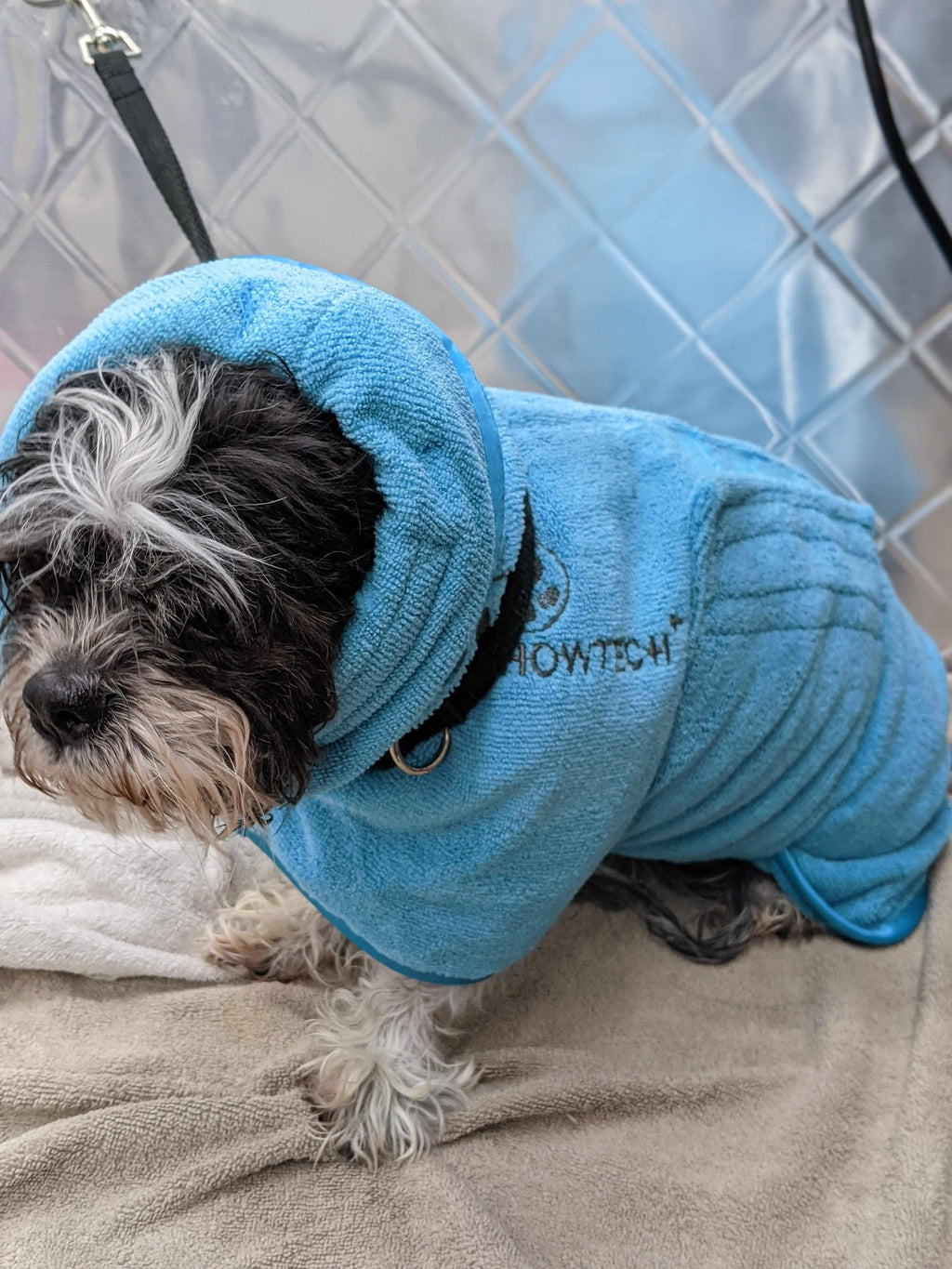 Fini les serviettes qui tombent de votre chien et fini les sols et les meubles mouillés ou sales !