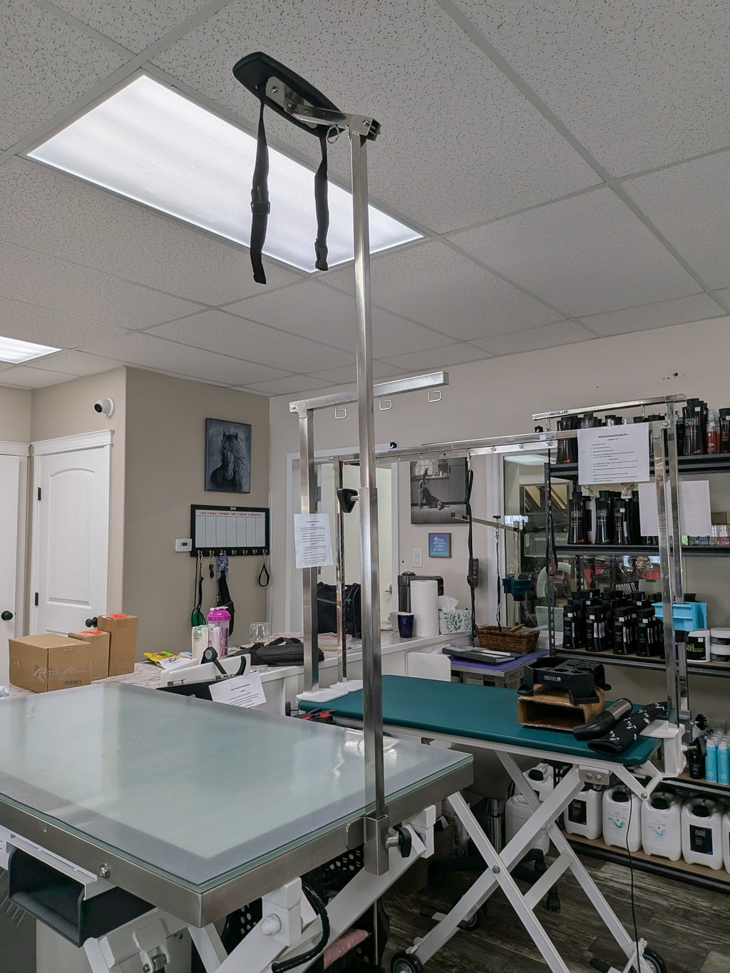 Le vinyle rembourré facilite la désinfection entre les chiens.