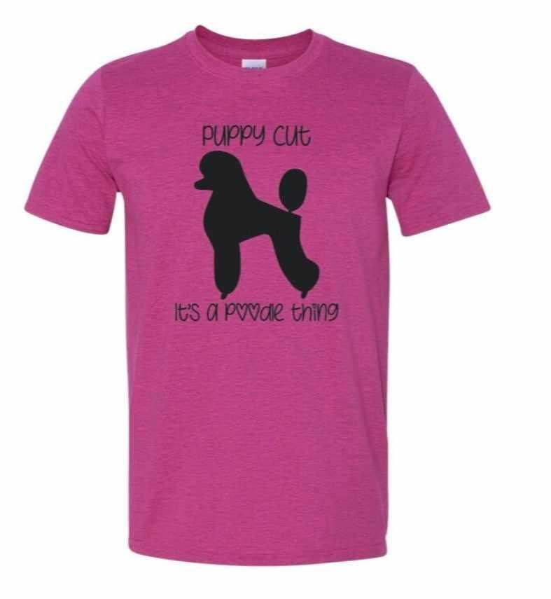 Puppy Cut, It’s a Poodle Thing is referring to the funny fact that a lot of pet owners go to the groomer and request a “puppy cut” when this term actually refers to the Show Poodle clip!