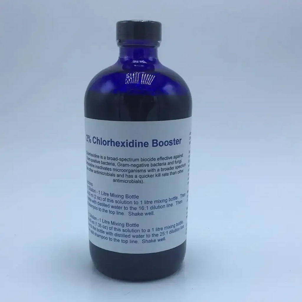- Add Chlorhexidine to any shampoo(that is not ionic surfactant) or conditioner to help with skin conditions in pets.