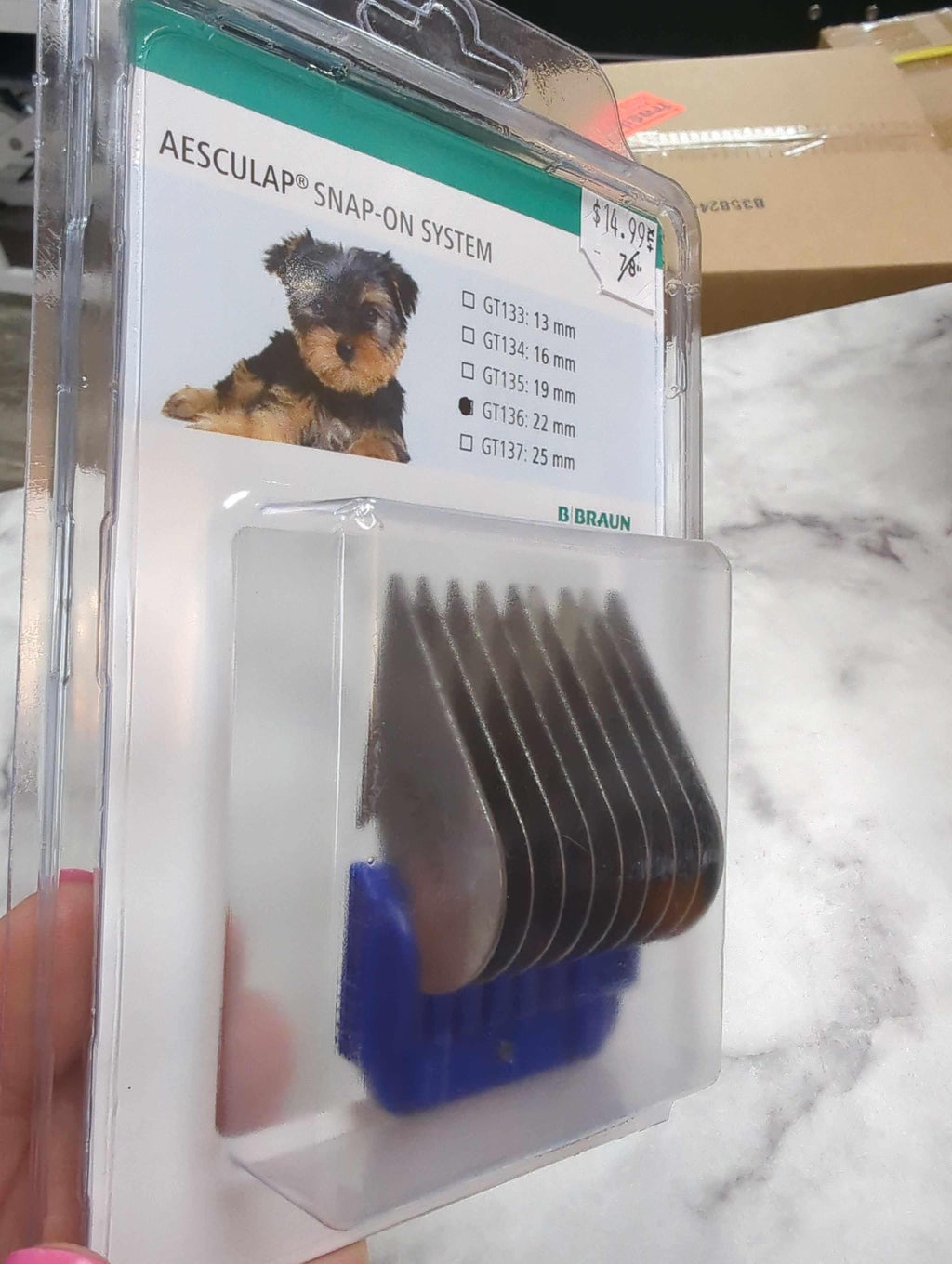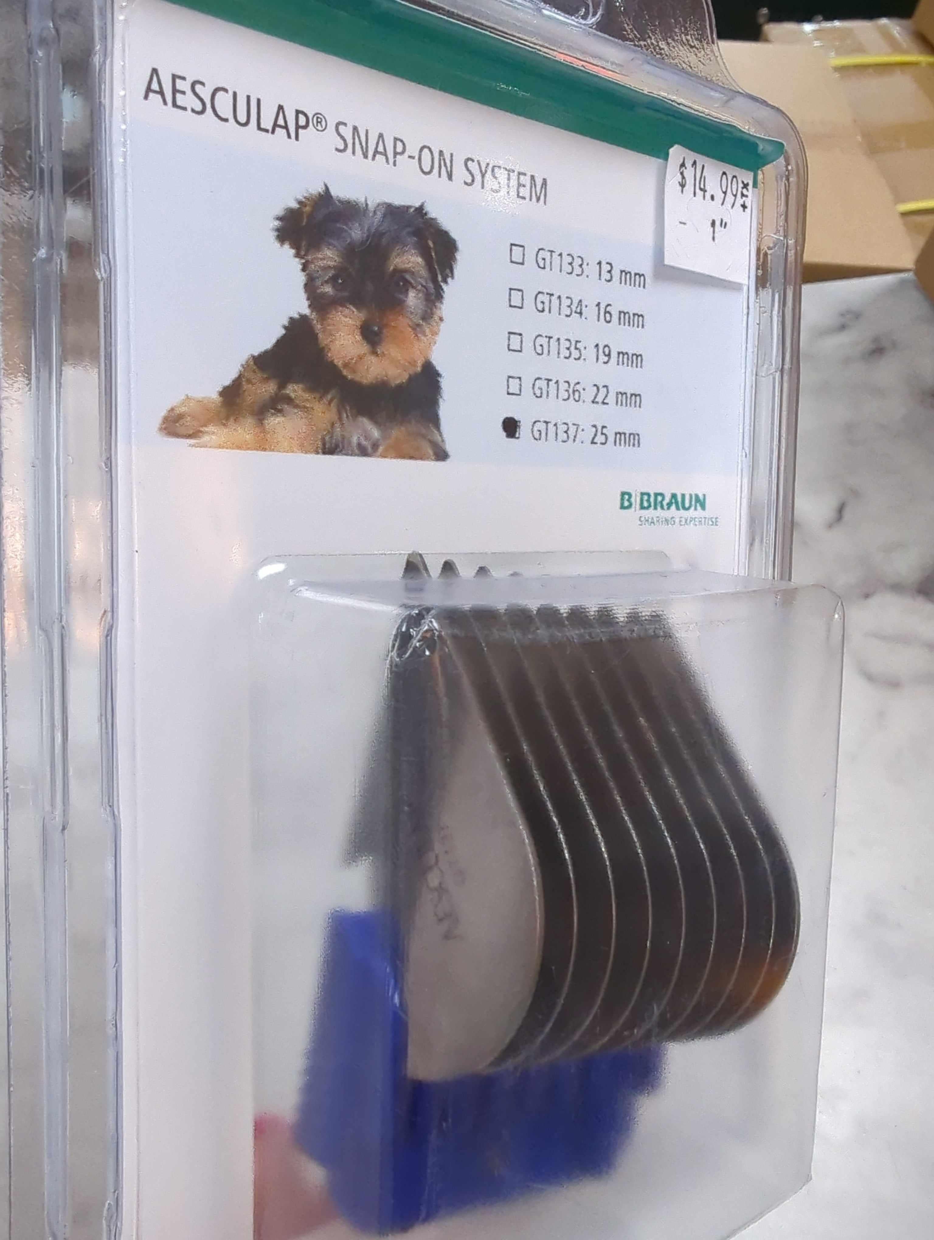 Aesculap Clip-on Comb or SnapOn guard combs are well made sturdy with metal teeth that slide effortlessly through hair. These fit A5 or snap on blades in regular( narrow) size. NOT wide..