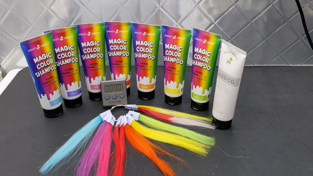 - Wash hair with warm water. If the pet’s coat is dirty and oily, wash pet first. Don’t use conditioners before using the Magic Color Shampoo for best results.