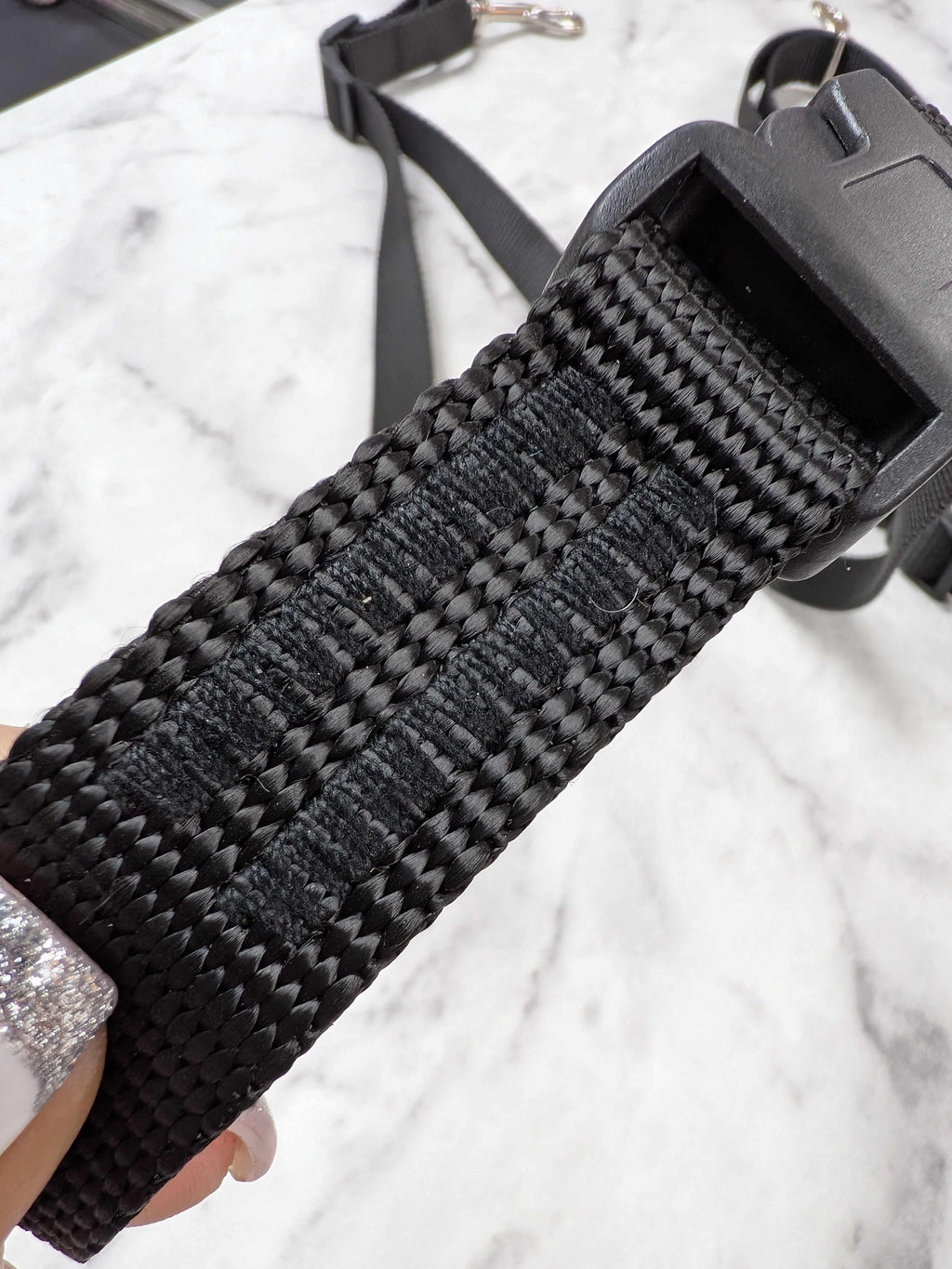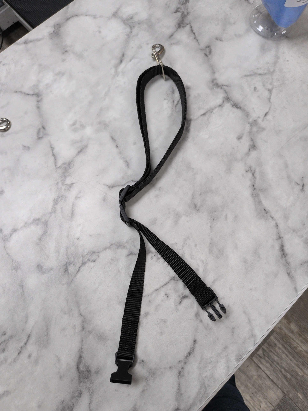 - two adjustable sliders to adjust length, and adjust size of neck loop. move the second slider tight to the neck sizing one to prevent it from moving at all.
