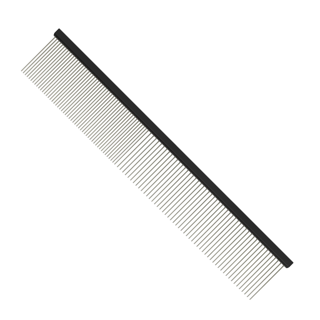 It comes in three sizes. This beautiful grooming comb has sturdy teeth is great for fluffing and finishing work on your groom.
