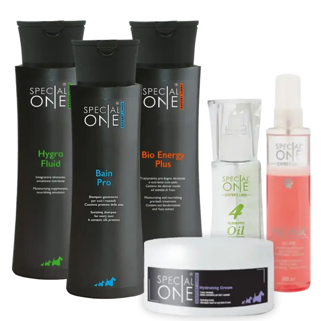 Special One Long and Fringed Coats Care Kit is the ultimate professional solution for dogs with long, silky, and feathered coats.