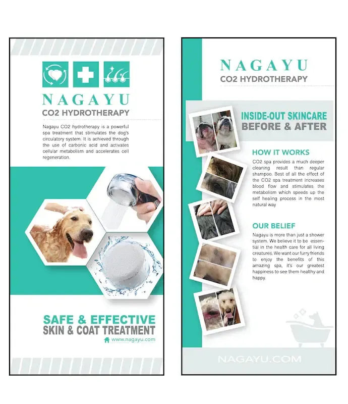 Nagayu CO2 SPA is able to decompose the body fluid that caused the odor, and give a much better cleaning than regular water. At the same time, the effect of the bicarbonate ions, hydrogen ions also wash off mineral waste and silicon dirt clogged in the hair root. This results in a full, silky, and healthy coat. We suggest to try Nagayu CO2 SPA without using the conditioner after shampoo to see the improvement on the hair condition.