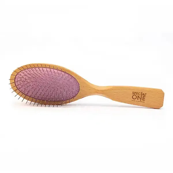 The Wooden Pin Brush is an excellent handcrafted tool, designed for the gentle care of the most demanding coats. Crafted from premium wood with a soft pink pad, it's perfect for gently treating long and sensitive coats, making it ideal for show dogs. The high-quality, carefully pointed stainless steel pins ensure effective and stress-free brushing, untangling knots without damaging the fur or irritating the skin. Handcrafted in Germany with premium materials, this brush combines functionality and aesthetics to deliver professional performance and flawless results.