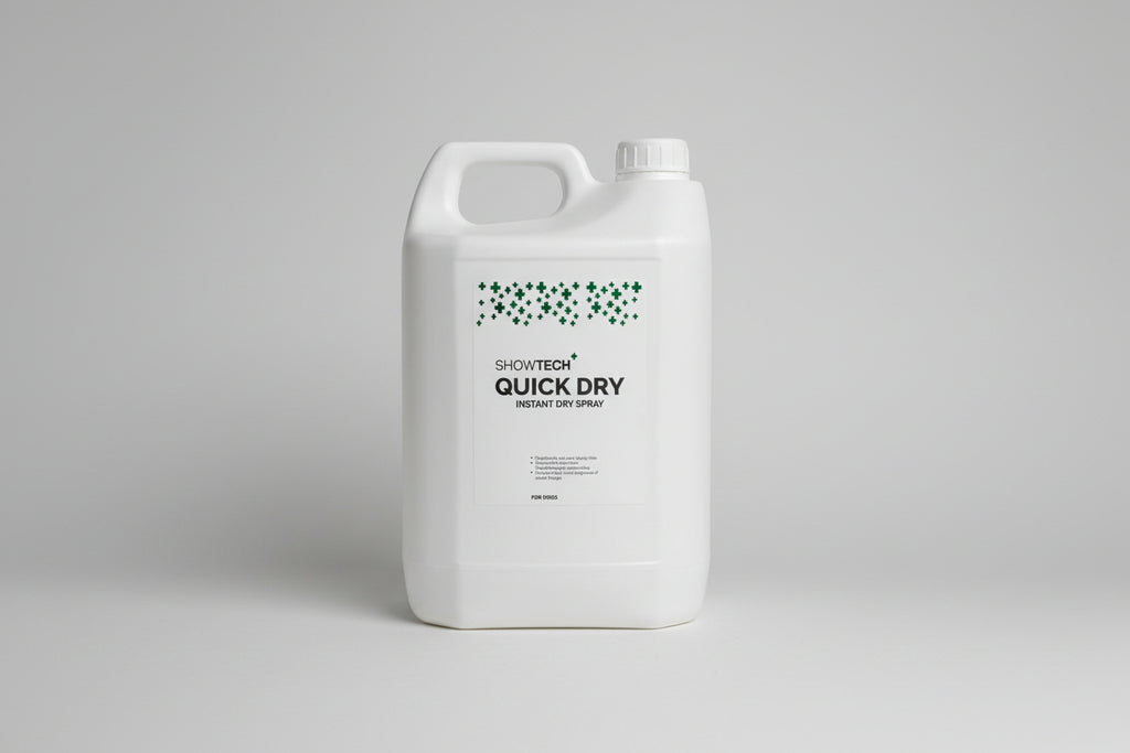 Show Tech+ QuickDRY Spray – The fast Track to Perfect Drying! This QuickDRY Spray is the ultimate time-saving solution for efficiently and effectively drying coats. Designed to reduce drying time by up to 40%, this advanced formula is perfect for thick, woolly, or hard-to-dry coats. By accelerating water evaporation, QuickDRY Spray minimizes drying time, allowing you to focus more on finishing and styling. It leaves every coat smooth, light, and easy to manage, with no sticky or greasy residue. Enriches with a refreshing papaya scent, this innovative spray with its protective formula shields the coat from heat damage caused by dryers, making it an essential tool for busy grooming salons, SHOW TECH+ QuickDRY spray is your go-to product for faster, more efficient drying and a beautifully finished coat every time.