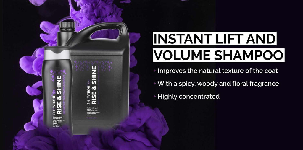 Want to maintain the natural coat texture but add body and volume? The Show Tech+ Rise & Shine Volumizing Shampoo will give you unsurpassed volumizing results.
