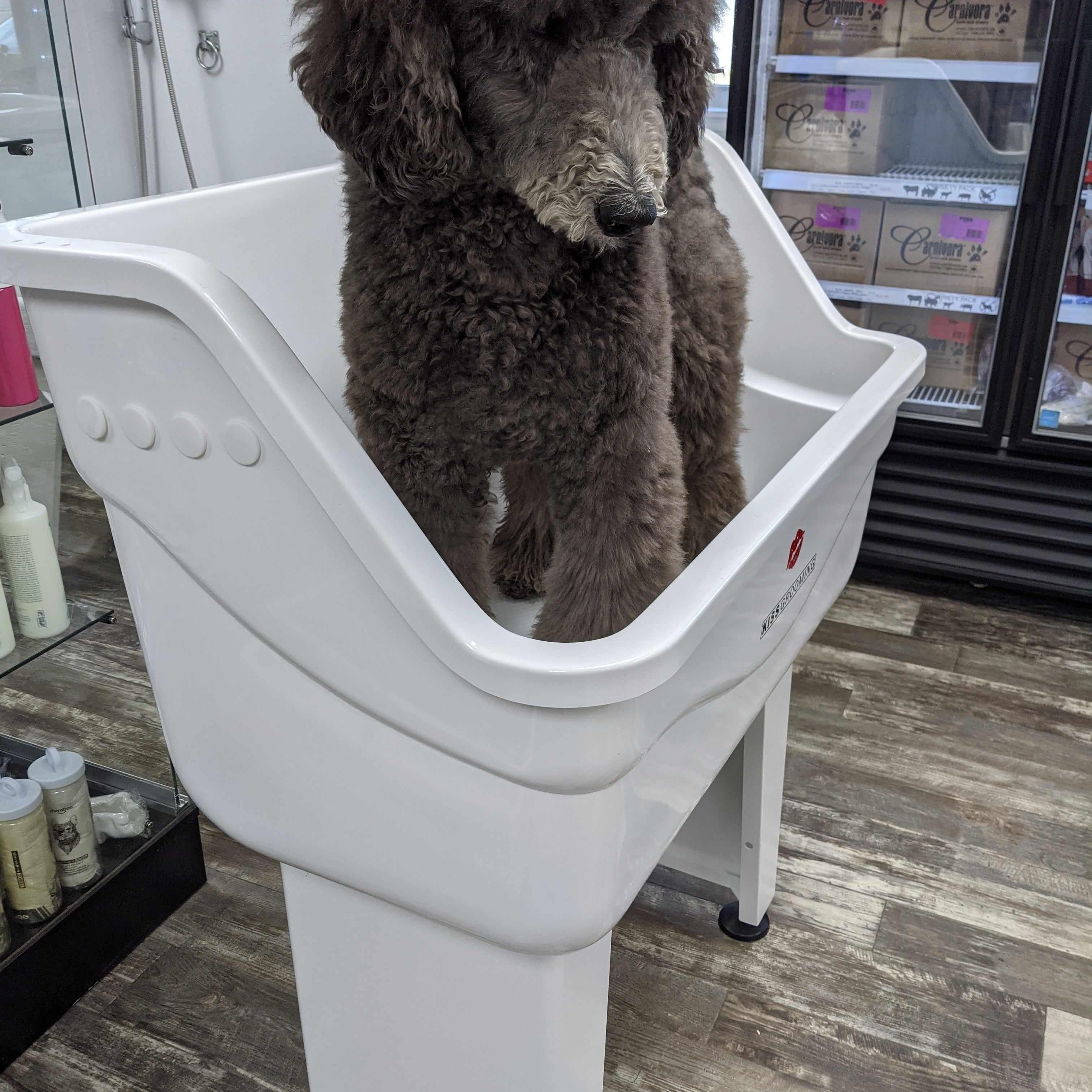 Great additional tub for busy salon with small space. Breeders, small & med dog groomers, or as a Spa soak tub. Offer Hydro packages, mud bath, Microbubble, milk bath, and deep conditioning soak.