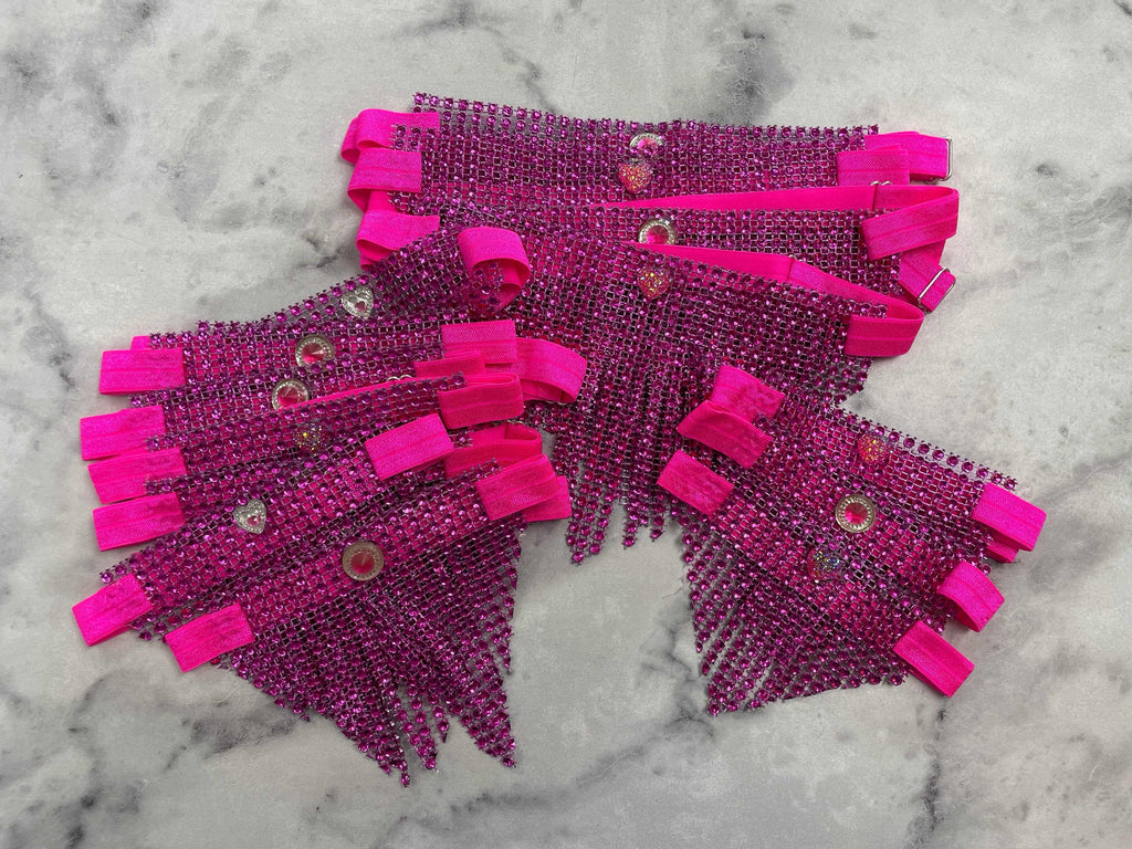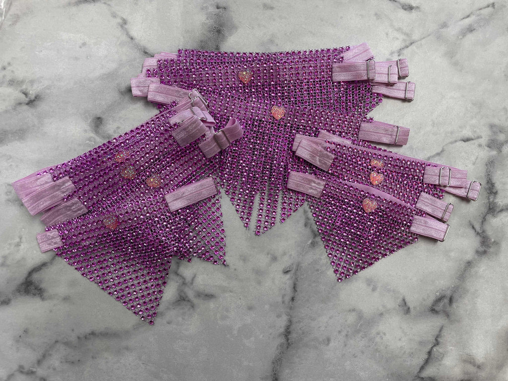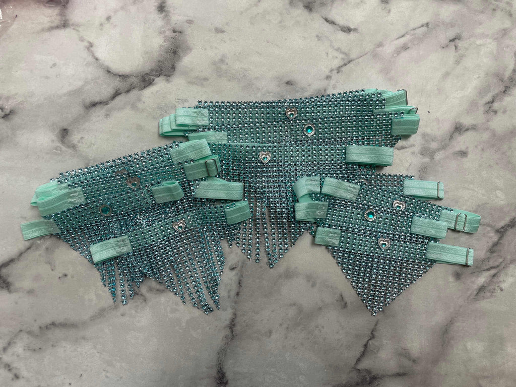 Our newest creation! Crafted in house by family of CGD! these stunning collars feature Sparkle wrap in many color choices with complimentary Elasticized ribbon that's adjustable and assorted Blingy centres. watch the strands sway and catch the light as the pup moves.