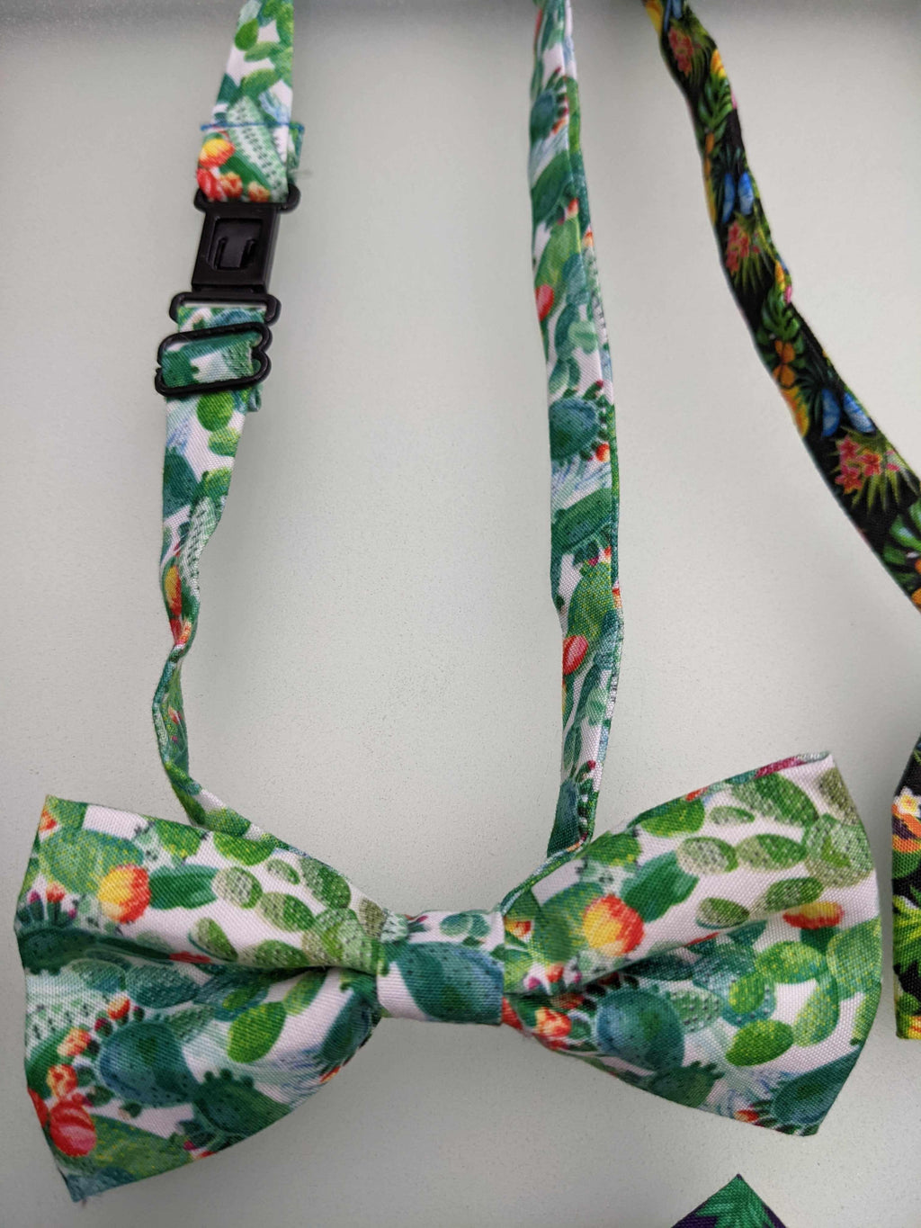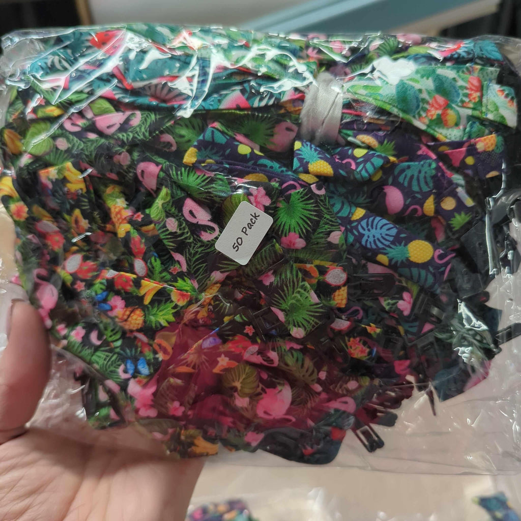These Bowties feature a Summer themed patterns such as pineapples, flamingos and watermelon. Lightweight cotton fabric, they are cost effective giveaways in any salon. Small plastic snaps secure the bowties securely, they slide to adjust.