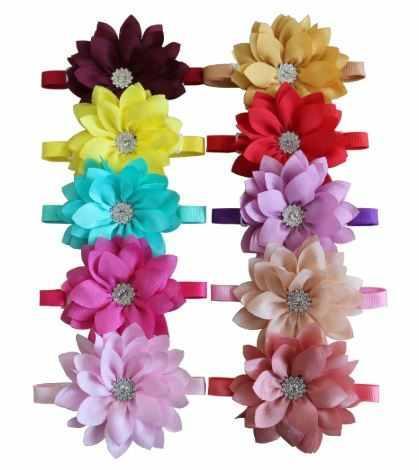 These collars feature a triple layered fabric flower with Sparkly center, adjustable sliders and clips on matching/ coordinating ribbon collars.