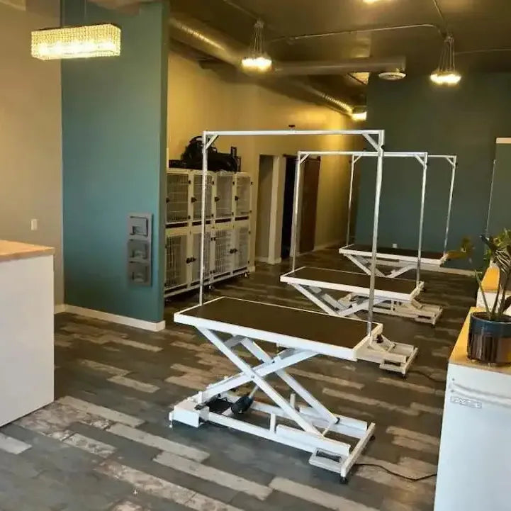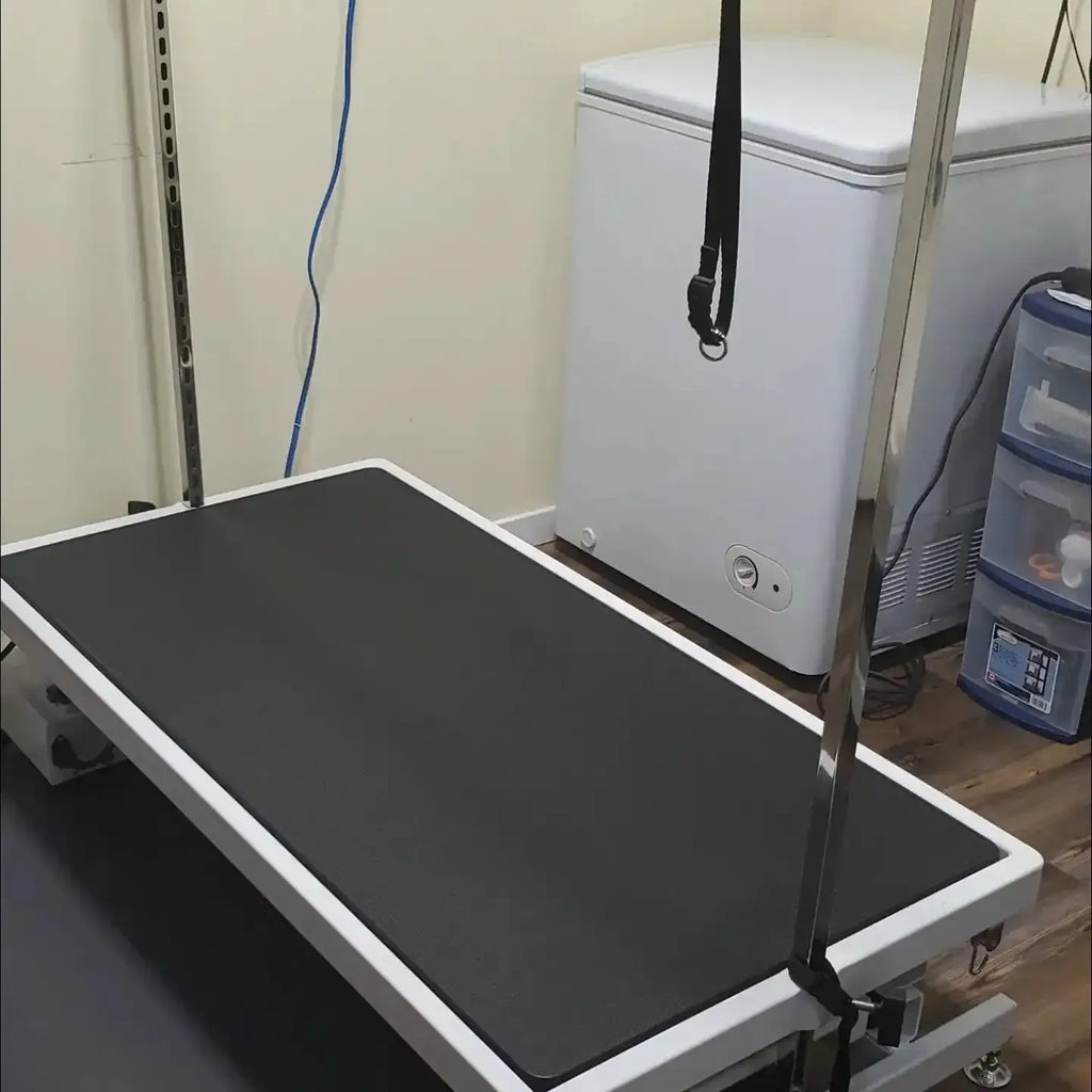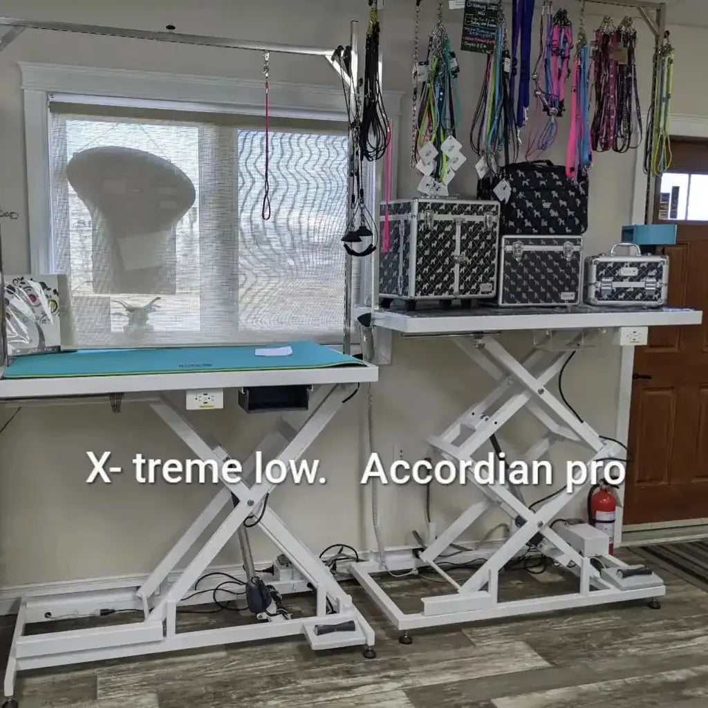 *2023 model has 10' power cord, 51" overhead arm with slots all up sides, sealed cables, & double pedals. The X-treme Groomers Table! comes with everything you could possibly need!