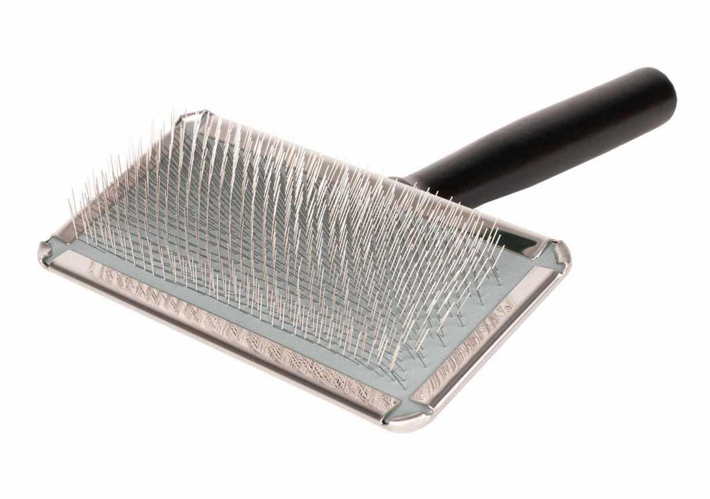 These exceptional brushes have ultra-fine, closely spaced pins that have the ideal length and angulation. Their ingenious design makes the pins feel very soft and perfect for brushing the hair without damaging it! You can safely remove dead undercoat without damaging the precious top coat.